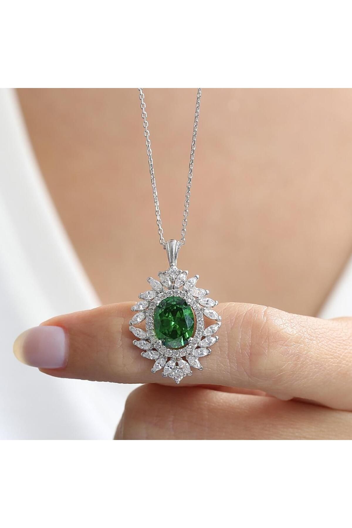 Pırlanta Montur Sentetik Zümrüt Gümüş Damla Kolye Pırlanta Montur Sentetik Zümrüt Gümüş Damla Kolye UKL00031-SMT تک سایز