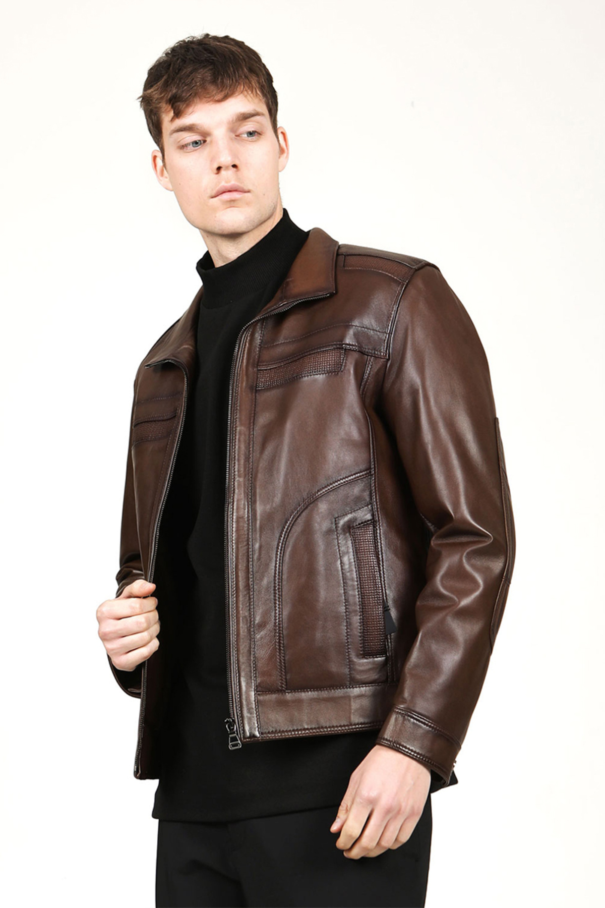 E1091 Gerçek Deri Erkek Mont Camel Antik E1091 Gerçek Deri Erkek Mont Camel Antik WCRT1176 4XL