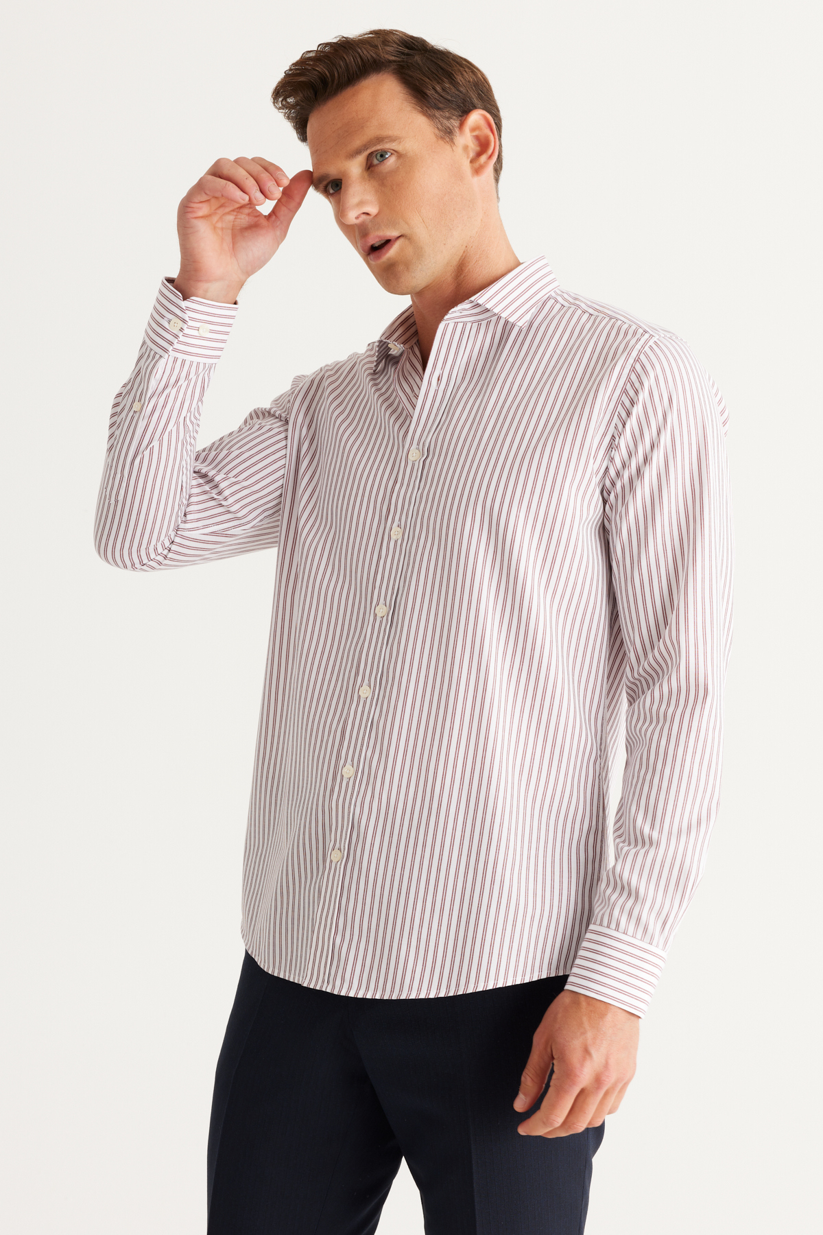 Pembe Çizgili Slim Fit Gömlek Pembe Çizgili Slim Fit Gömlek AEG100D017S05XS3D 48