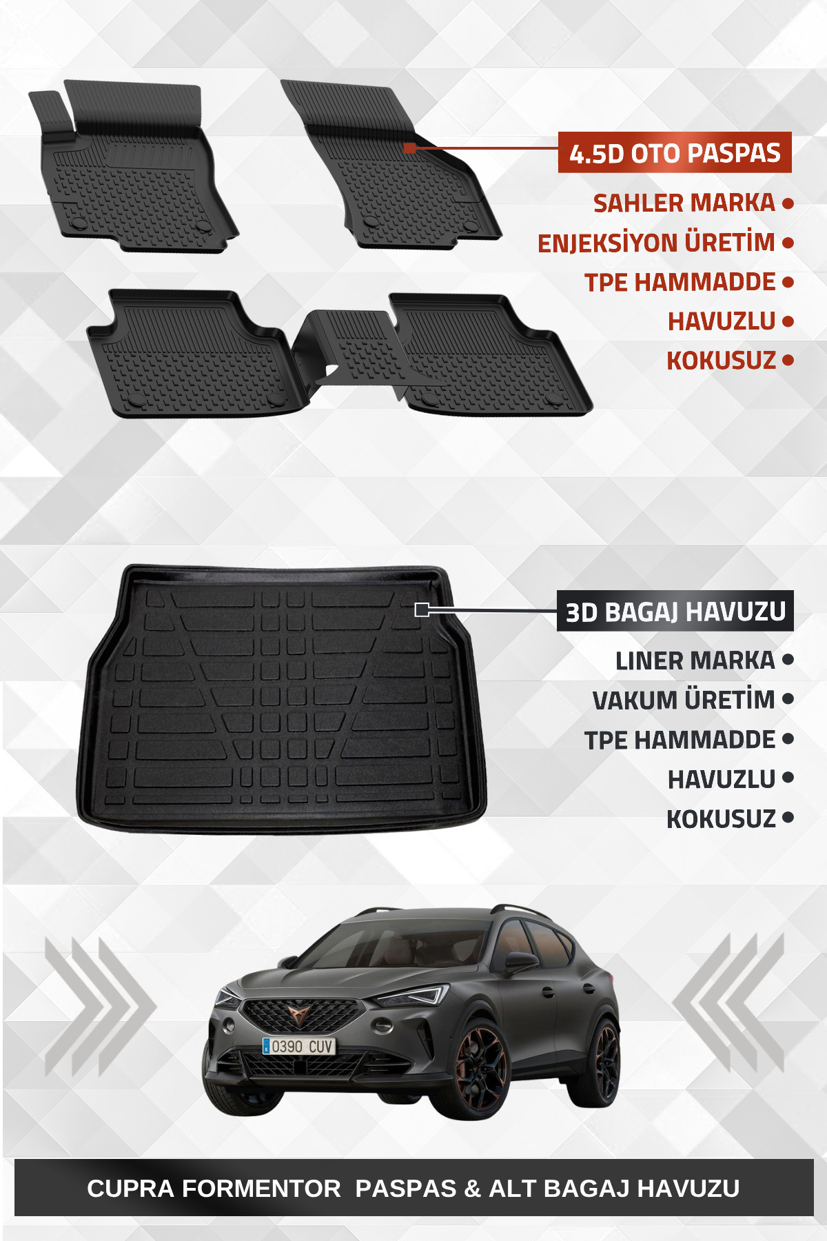 Cupra Formentor Mild Hybrid 2024+ Uyumlu Araca Özel 4.5D Havuzlu Oto Paspas - Formentor Cupra Formentor Mild Hybrid 2024+ Uyumlu Araca Özel 4.5D Havuzlu Oto Paspas - Formentor 250000145555 تک سایز