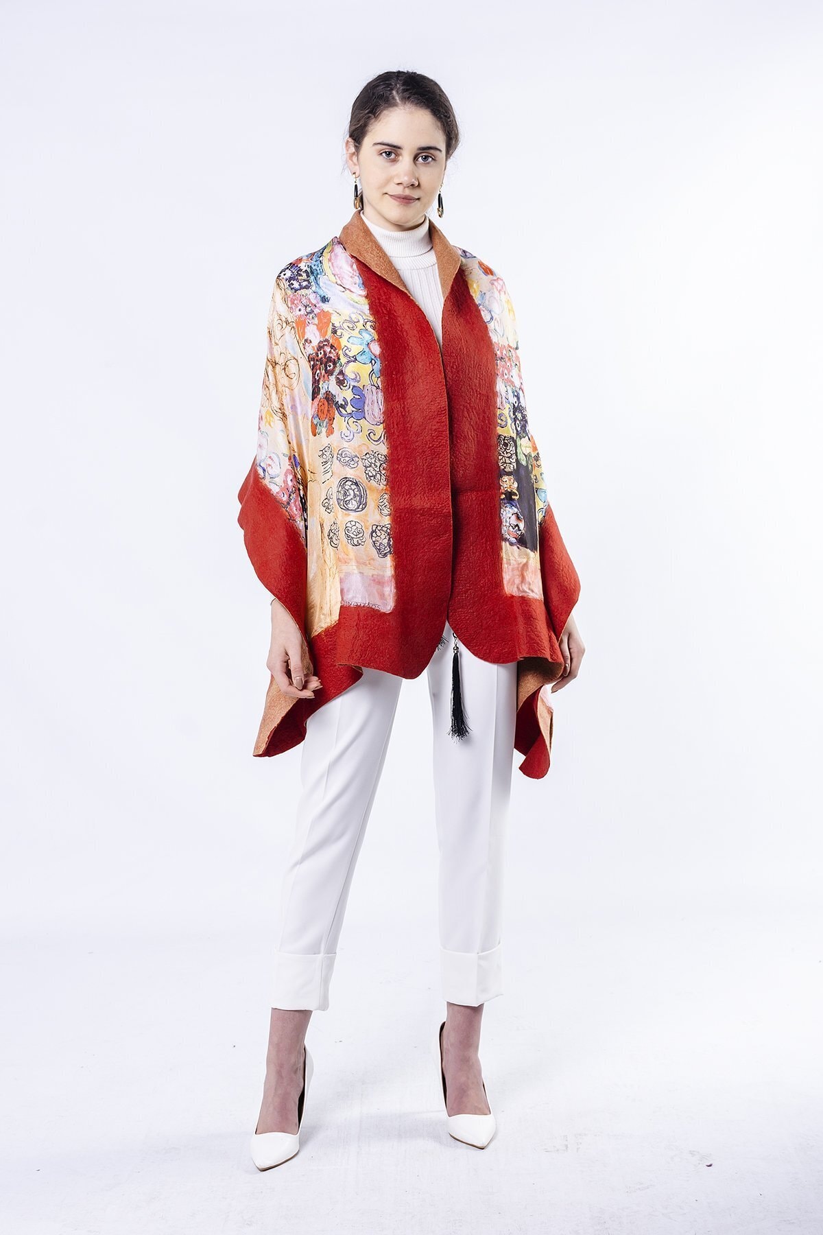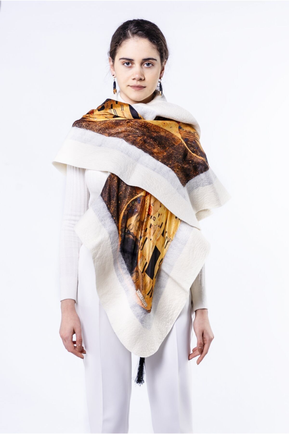 İpek Keçe Şal | Beyaz Gustav Klimt Adele Bloch Bauer | Nomads Felt İpek Keçe Şal | Beyaz Gustav Klimt Adele Bloch Bauer | Nomads Felt NF00894 تک سایز