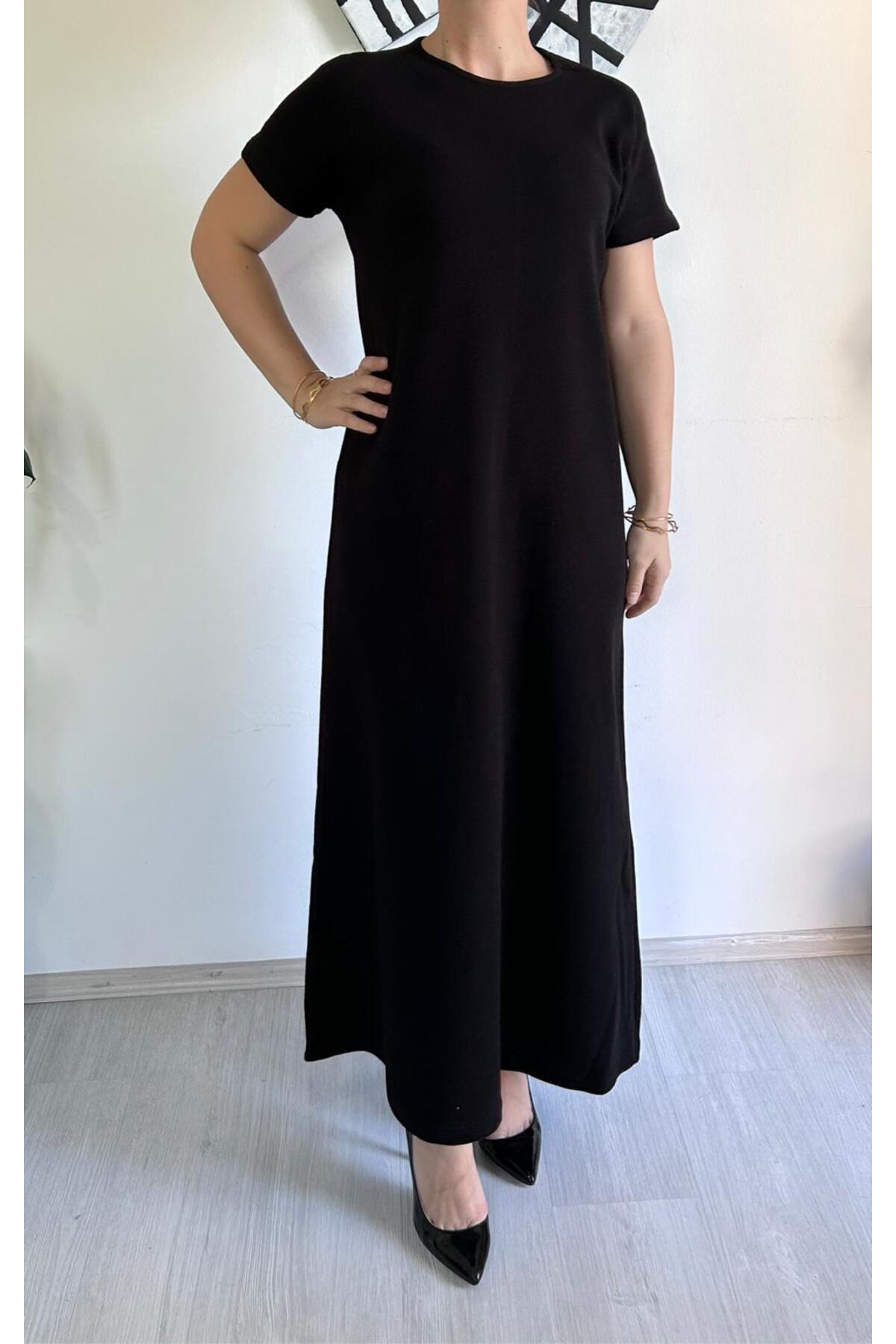 Siyah Uzun Kruvaze Yaka Şifon Büyük Beden Elbise Siyah Uzun Kruvaze Yaka Şifon Büyük Beden Elbise ELBISEDELISI-1001 5XL