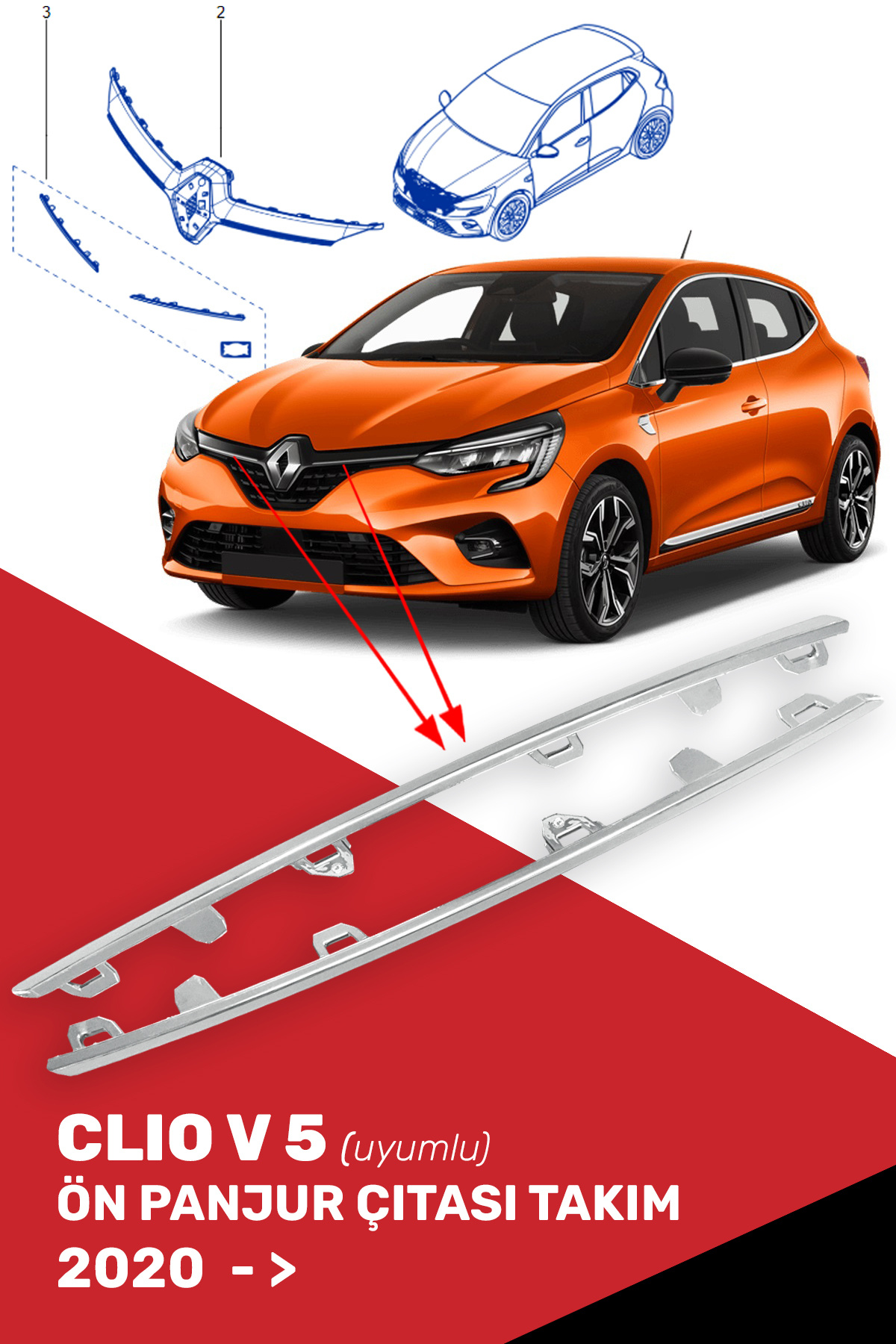 Clio 5 Ön Tampon 10 Parça Krom 2019 2020 2021 Clio 5 Ön Tampon 10 Parça Krom 2019 2020 2021 R01-15-65-20-2020-_alt تک سایز