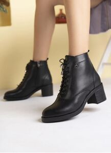 Hakiki Deri Günlük Kadın Bot / Bootie Bağcıklı Fermuarlı Klasik Bot Hakiki Deri Günlük Kadın Bot / Bootie Bağcıklı Fermuarlı Klasik Bot DC2035 40