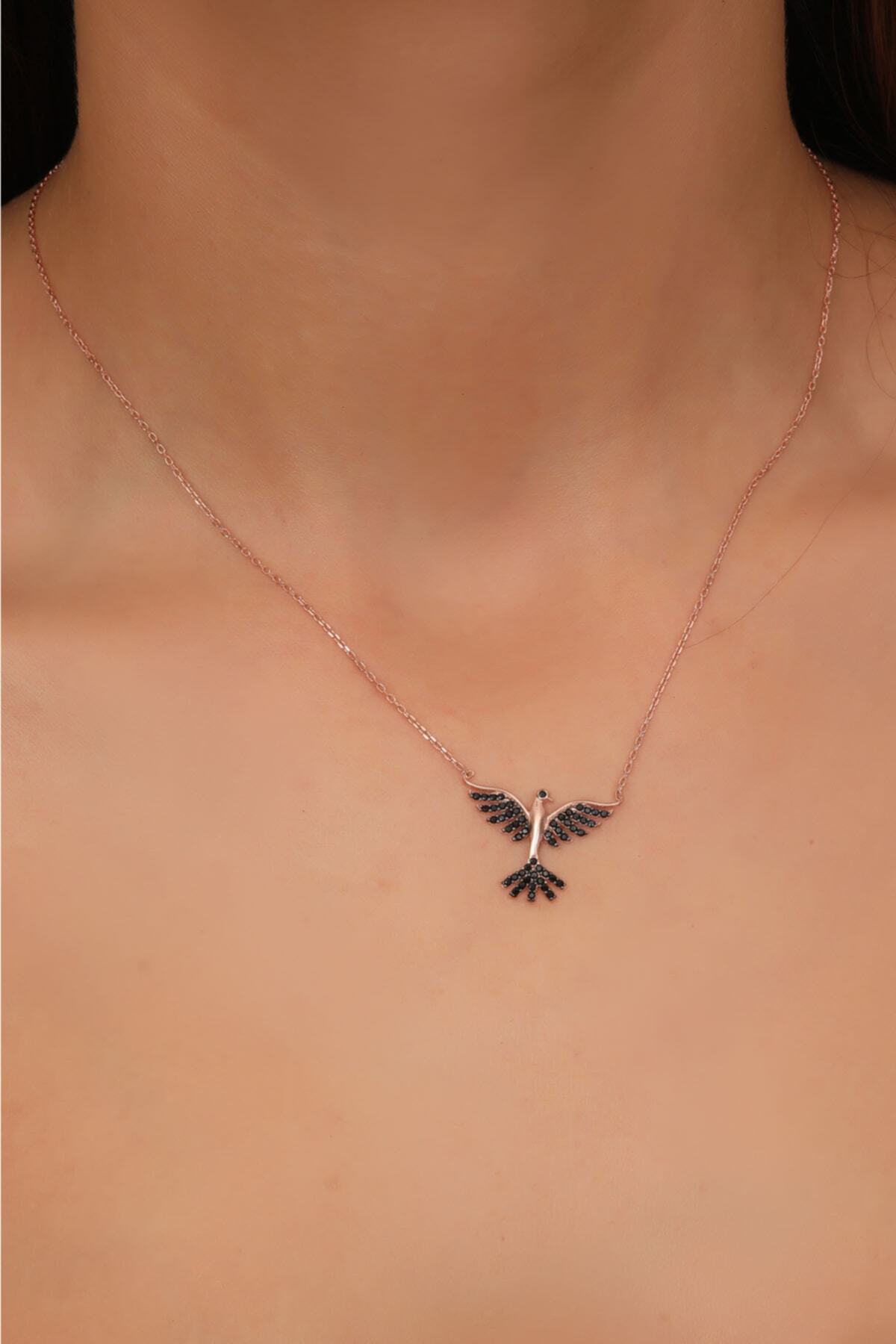 Kadın Rodium Kaplama Firuze Siyah Zirkon Taşlı Anka Kuşu Kolye Kadın Rodium Kaplama Firuze Siyah Zirkon Taşlı Anka Kuşu Kolye TTS-Kl-33 45 cm