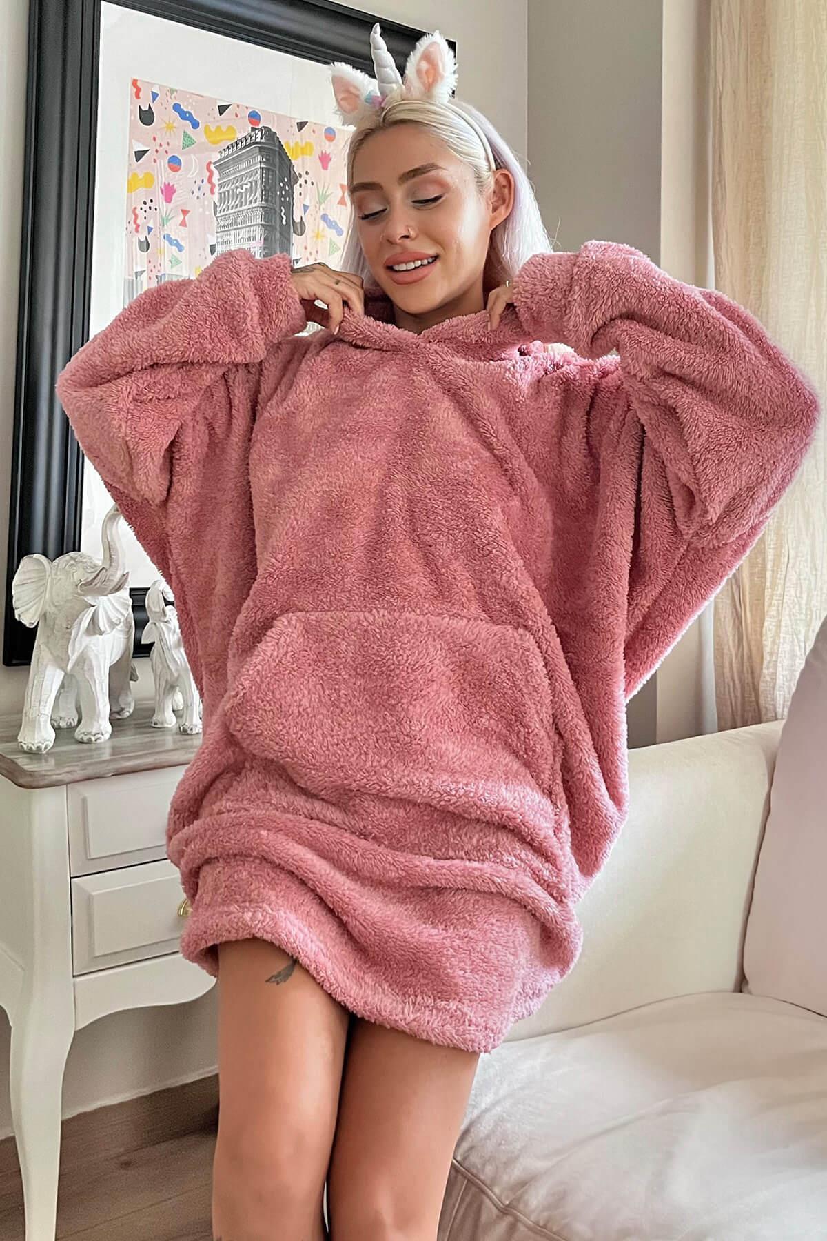 Gri Bulut Desenli Kadın Polar Peluş Tulum Pijama Takımı Gri Bulut Desenli Kadın Polar Peluş Tulum Pijama Takımı 1826 XL
