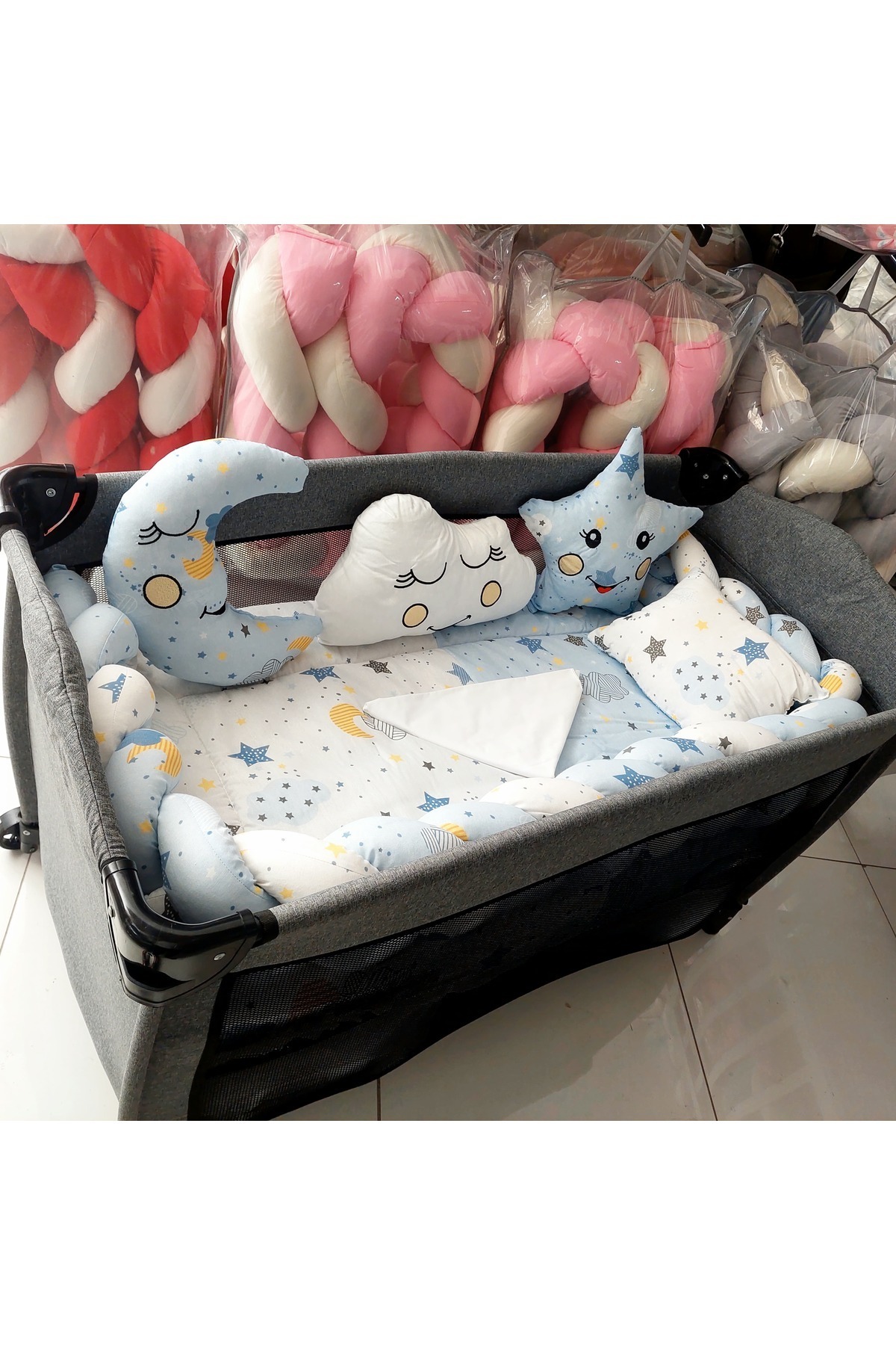 Figürlü Mavi Beşik Bebek Uyku Seti Cibinlikli 70x130 Figürlü Mavi Beşik Bebek Uyku Seti Cibinlikli 70x130 MBUFGM01 تک سایز