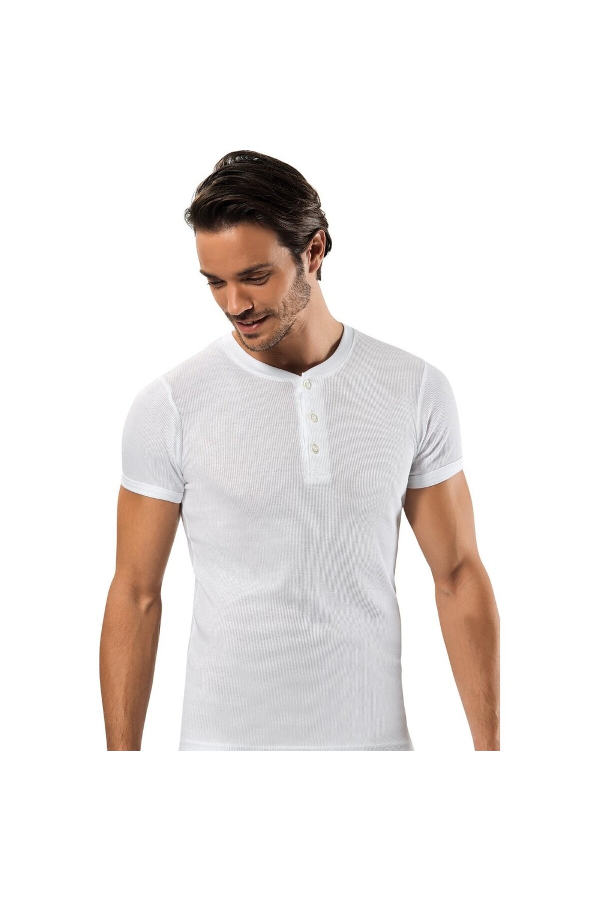 Erdem Beyaz Düğmeli Kaşkorse Tişört 1125 Erdem Beyaz Düğmeli Kaşkorse Tişört 1125 1125B 2XL