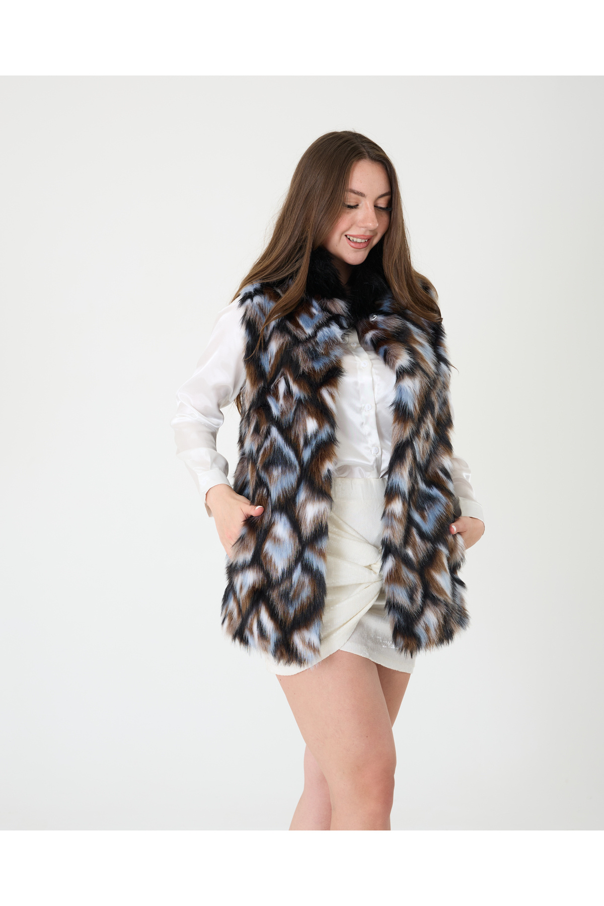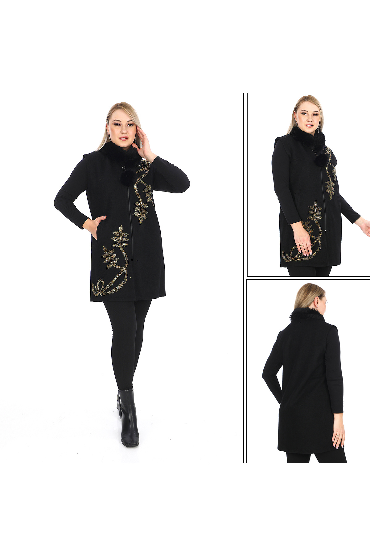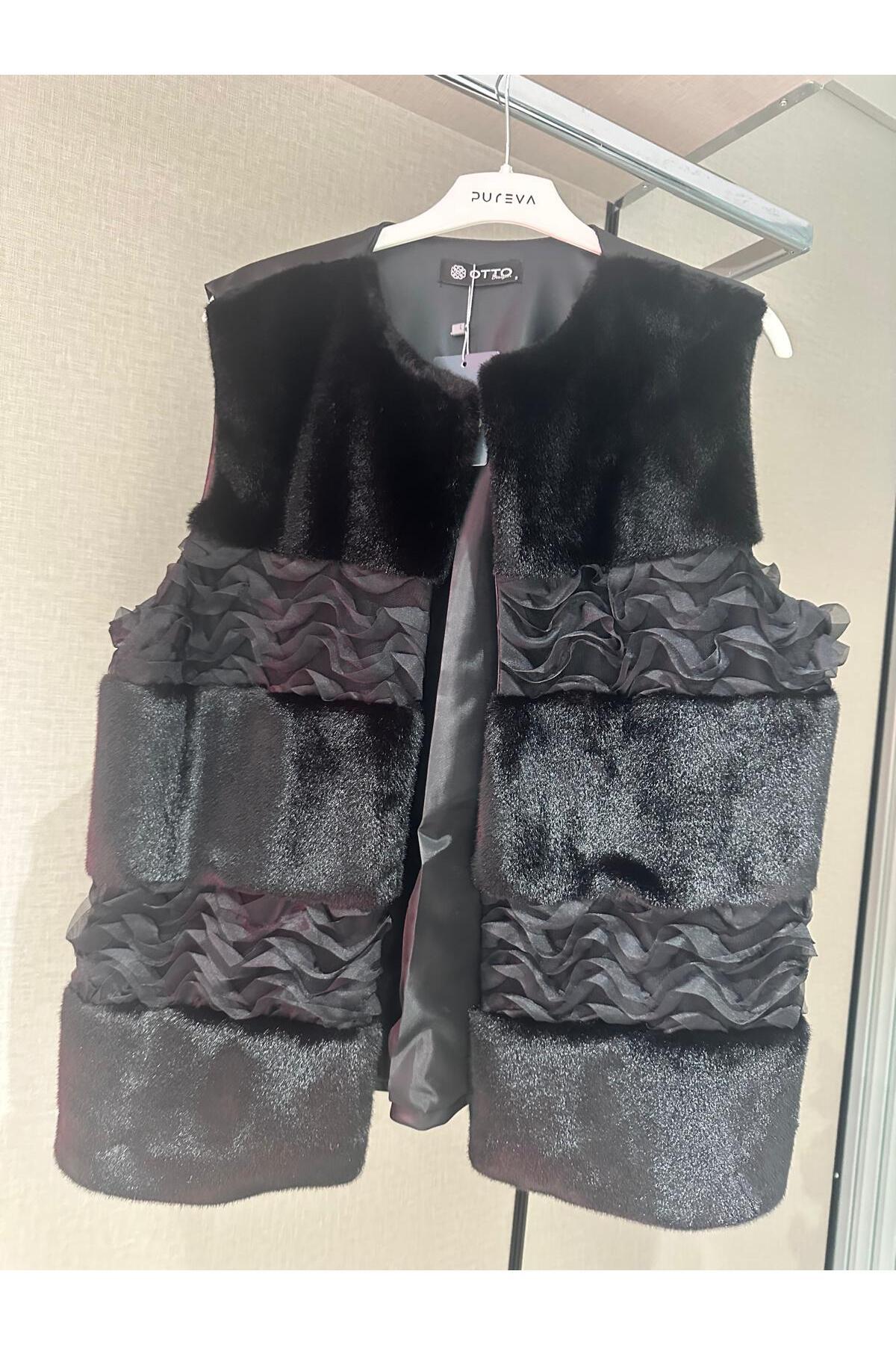 Karameşe Kadın Siyah Fermuarlı Kürklü Taşlı Yelek 176 Karameşe Kadın Siyah Fermuarlı Kürklü Taşlı Yelek 176 42