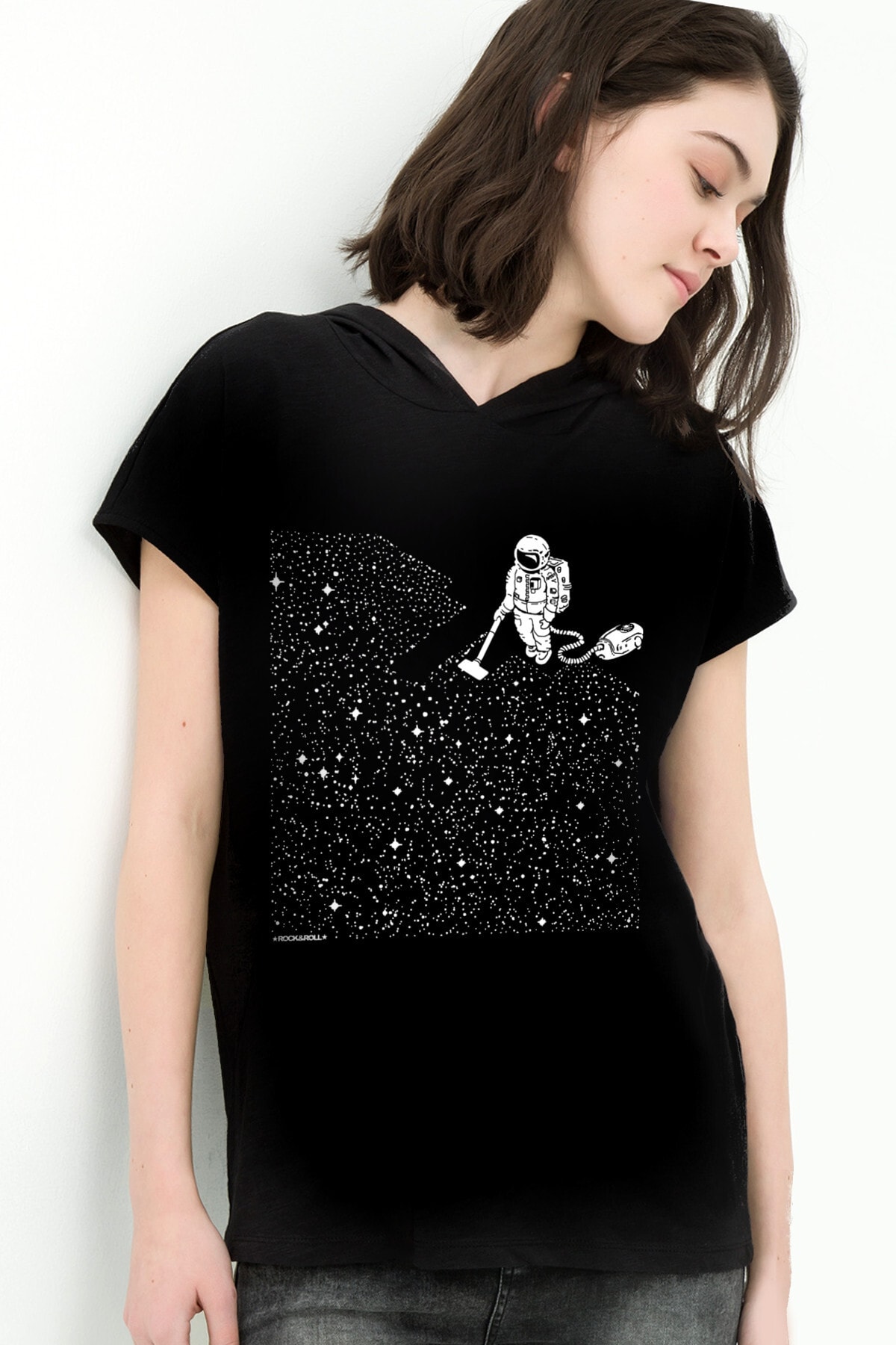 Kadın Siyah Ay Güneş Kapşonlu Kısa Kollu T-shirt Kadın Siyah Ay Güneş Kapşonlu Kısa Kollu T-shirt 1M1KW275AS XL