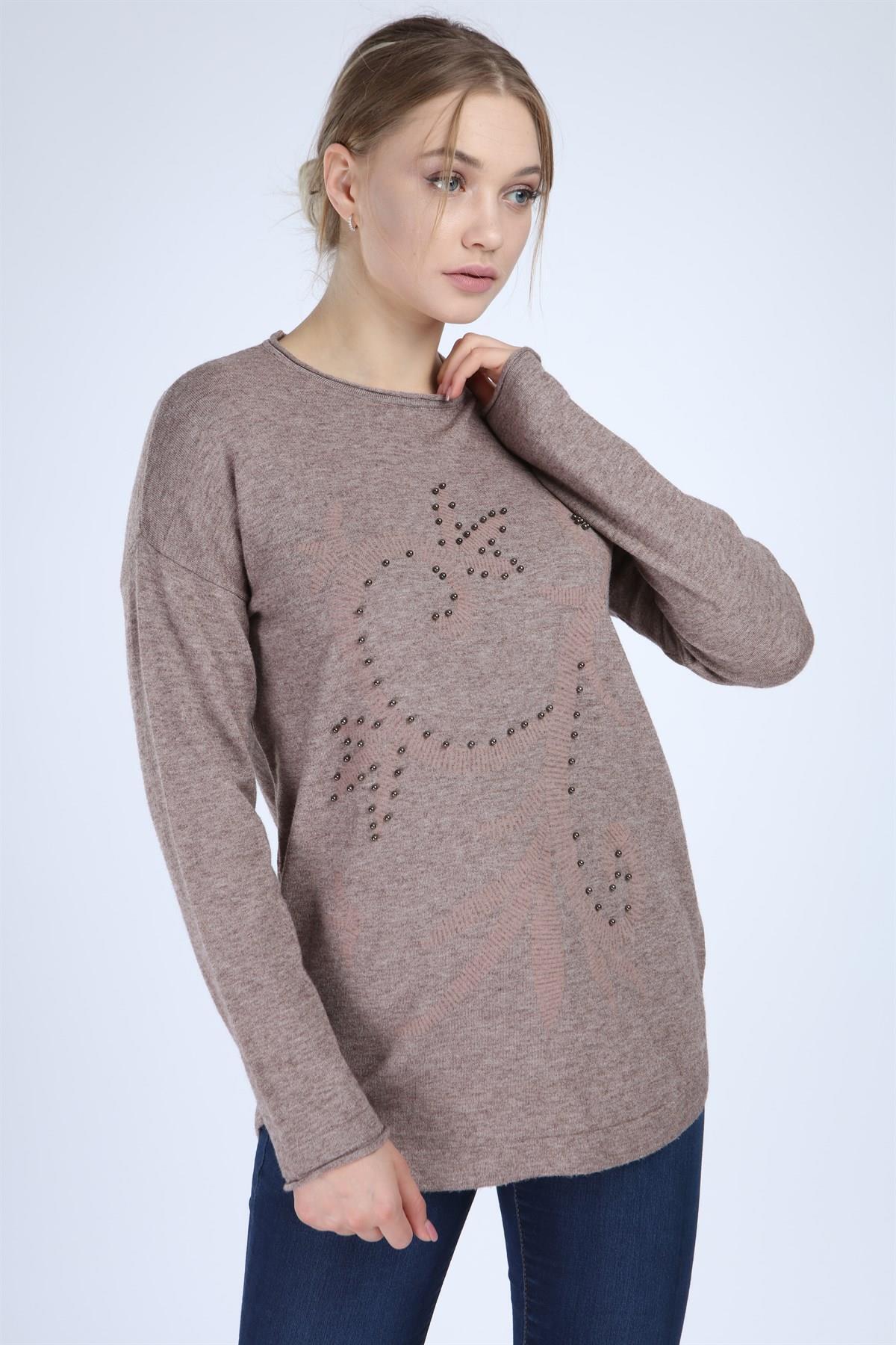 Women Kadın Önü Desenli Triko Beige 21-1240 Women Kadın Önü Desenli Triko Beige 21-1240 21-1240-1 42-44