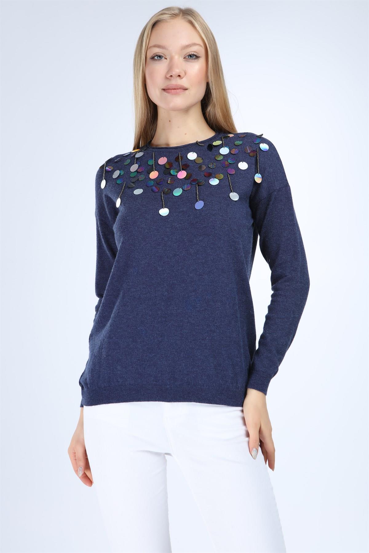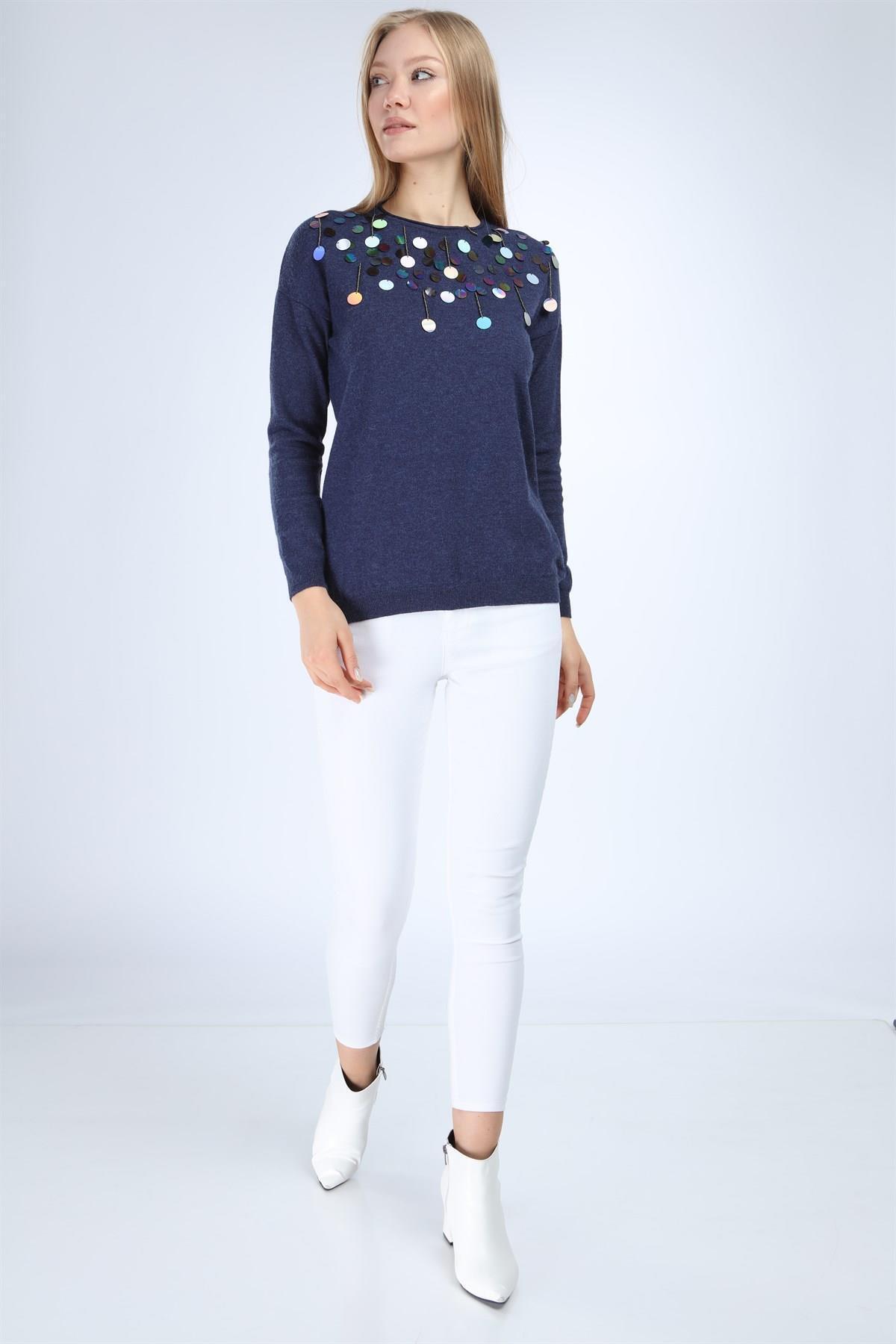 Women Kadın Pul Detaylı Triko İndigo 21-1111 Women Kadın Pul Detaylı Triko İndigo 21-1111 21-1111-2 42-44