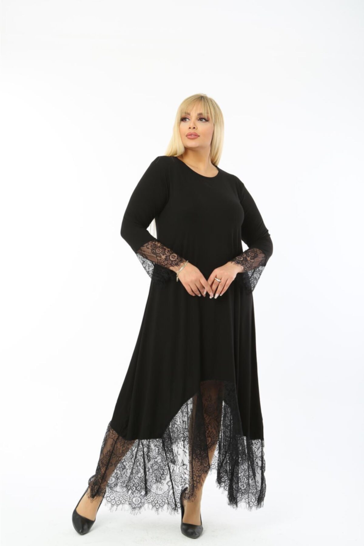 Kadın Büyük Beden Siyah Dantel Detaylı Viskon Uzun Kollu Elbise 65n18911 Kadın Büyük Beden Siyah Dantel Detaylı Viskon Uzun Kollu Elbise 65n18911 65N18911 58