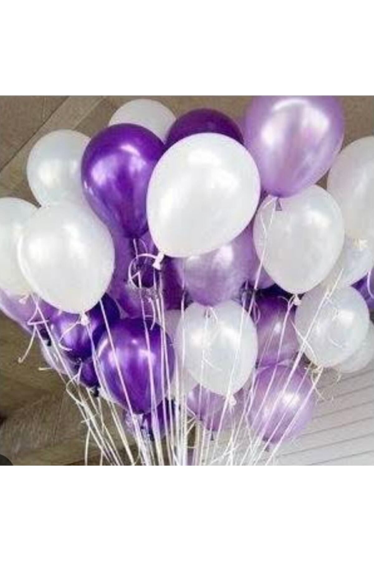 30 Adet Metalik Mor Lila Beyaz Balon, Helyumla Uçan Balon 30 Adet Metalik Mor Lila Beyaz Balon, Helyumla Uçan Balon DPS 3706 تک سایز