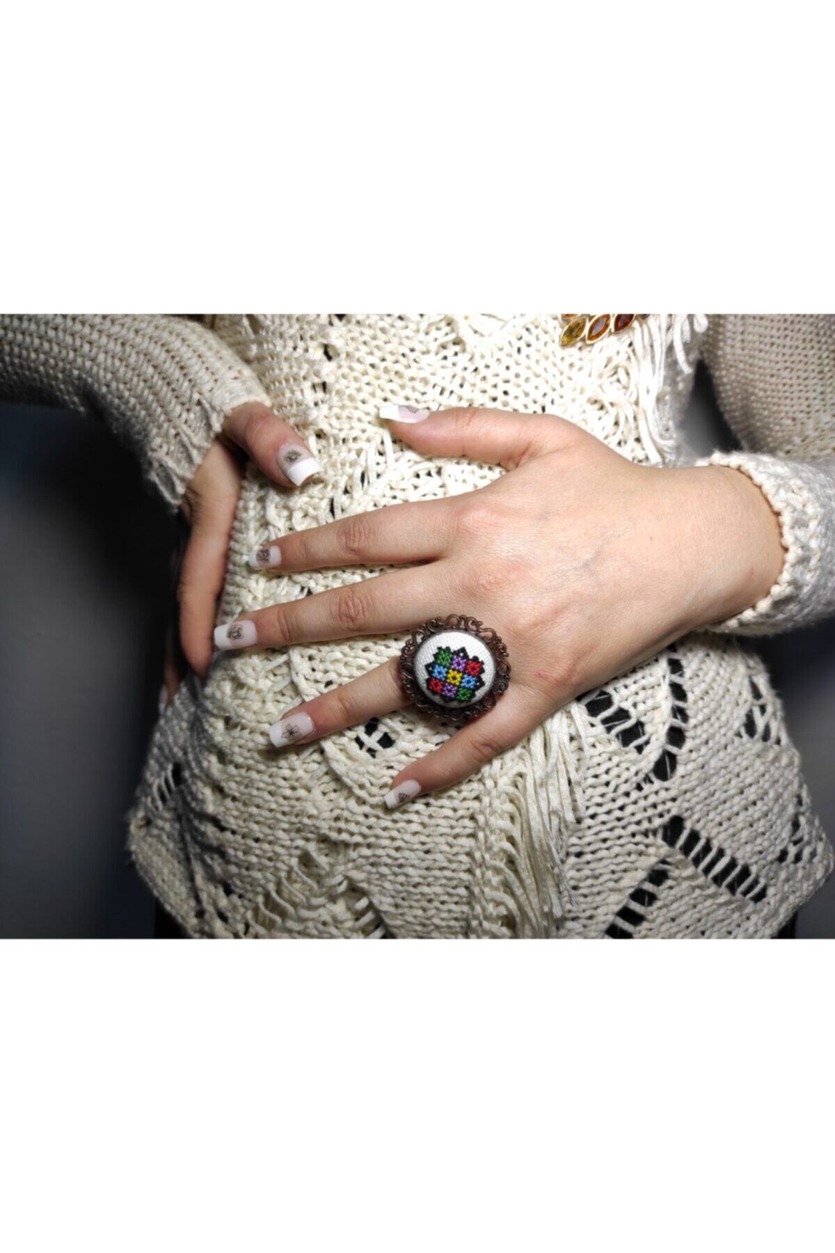 Kelebek Işlemeli Kanaviçe Yüzük Kelebek Işlemeli Kanaviçe Yüzük KELEBEKY تک سایز
