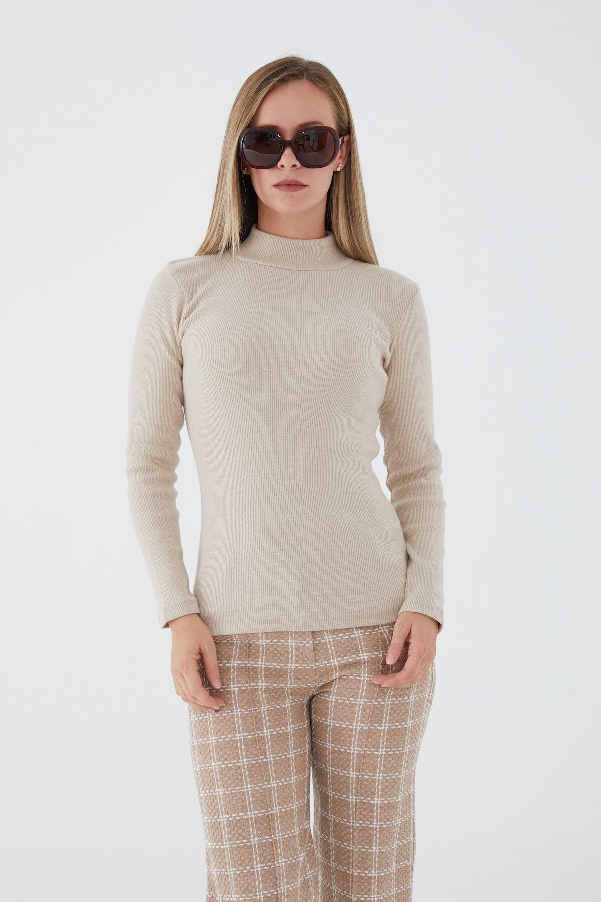Ekru Dik Yaka Kaşkorse Balıkçı Ince Fitilli Triko Kazak Ekru Dik Yaka Kaşkorse Balıkçı Ince Fitilli Triko Kazak BODY003 Standart