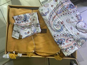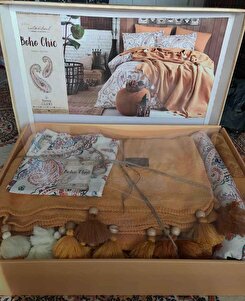Boho Chic Çift Kişilik Püsküllü Battaniyeli Nevresim Seti - Hardal Boho Chic Çift Kişilik Püsküllü Battaniyeli Nevresim Seti - Hardal OST91497 Çift Kişilik