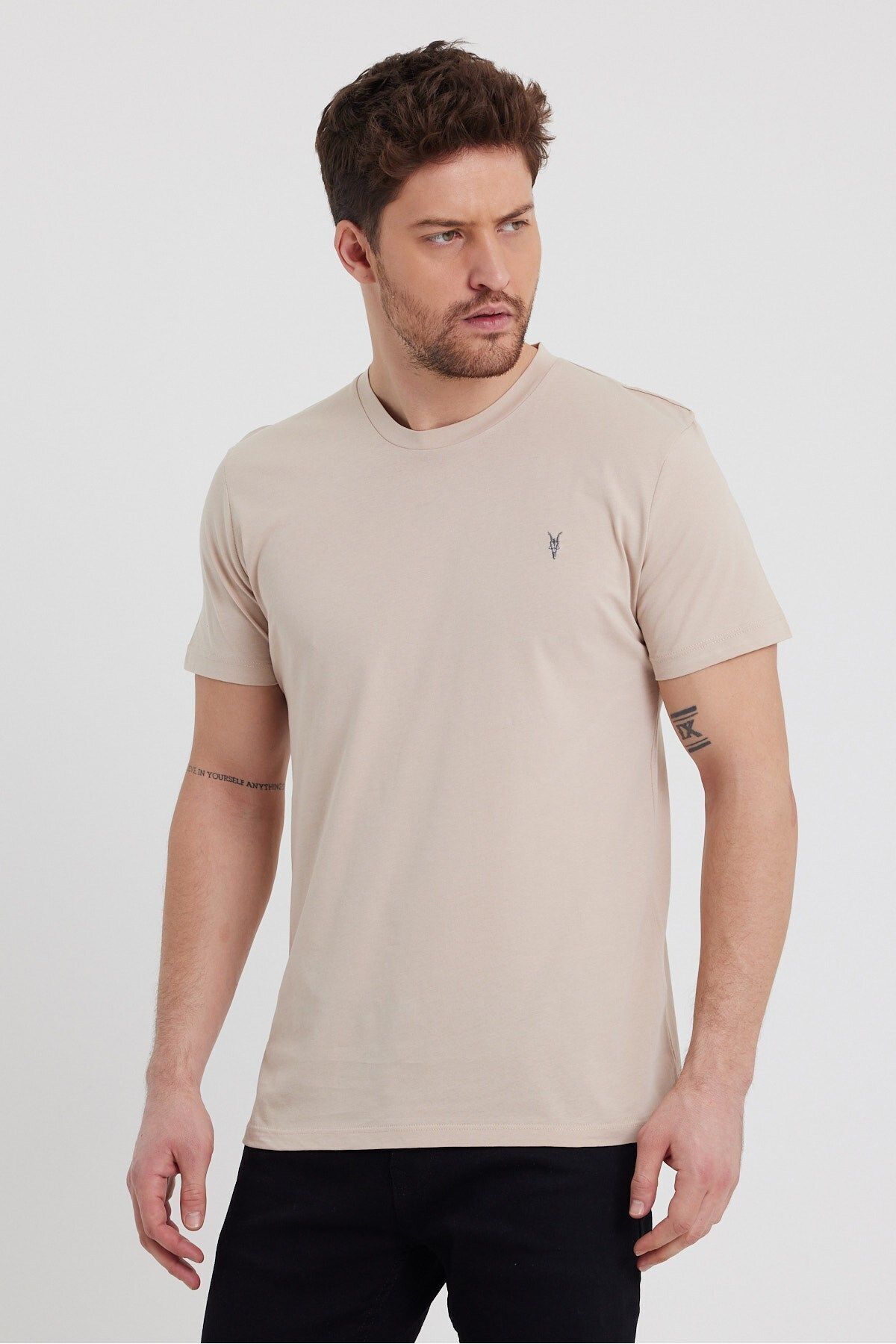 Erkek Bisiklet Yaka Slim Basic Bej Tişört Erkek Bisiklet Yaka Slim Basic Bej Tişört TEKLİ 1000 XL