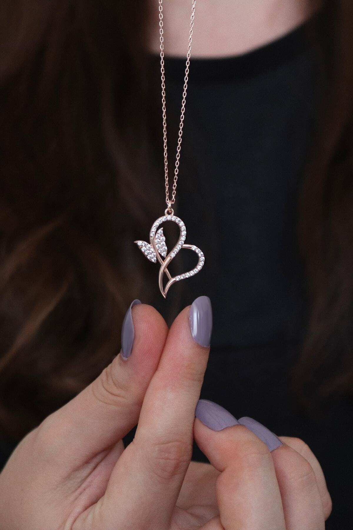 Kalp Ve Kelebek Tasarım Kadın Gümüş Kolye Kalp Ve Kelebek Tasarım Kadın Gümüş Kolye MK232 46 cm