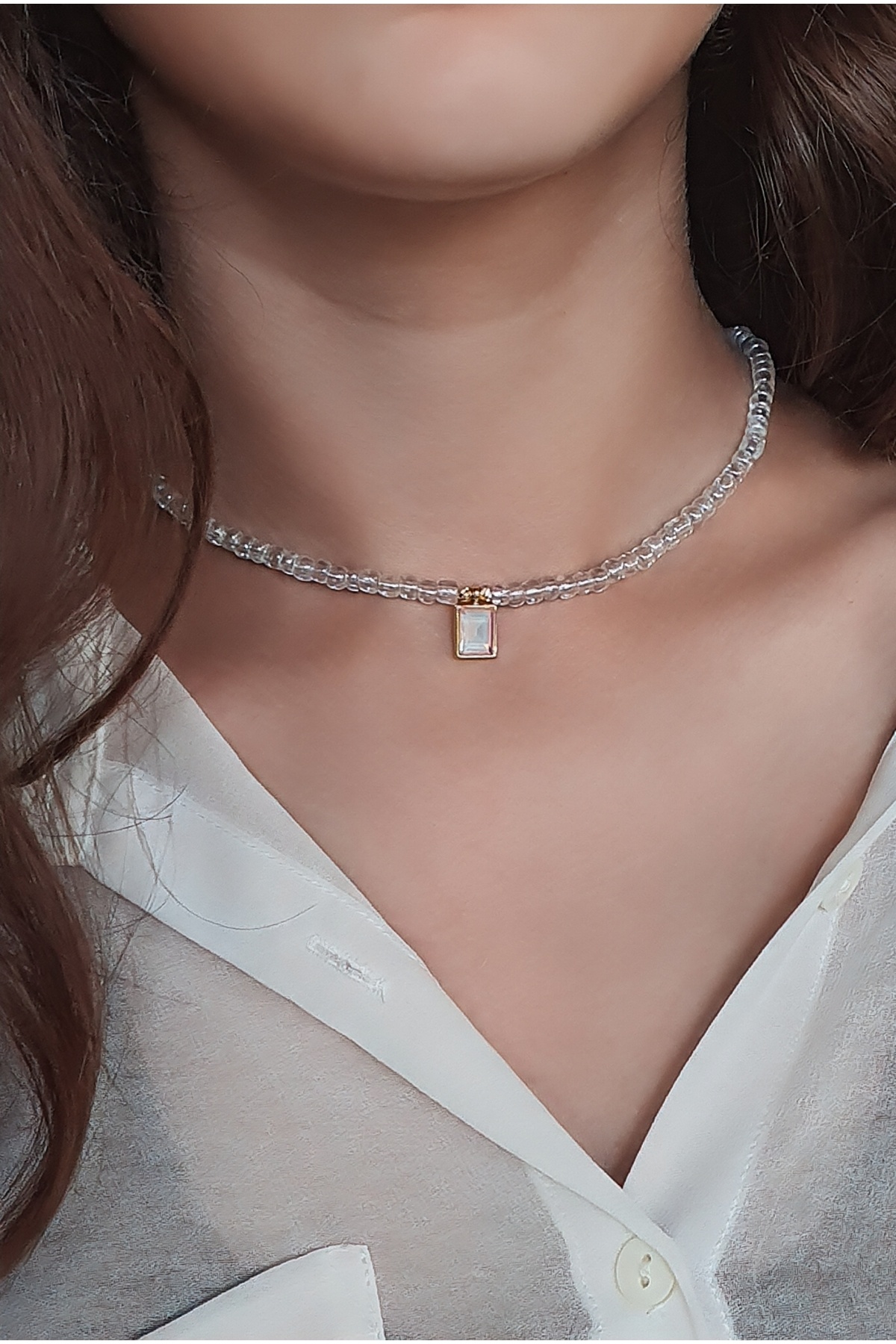 Kadın Şeffaf Renk Boncuk Kolye Kadın Şeffaf Renk Boncuk Kolye HNDCRFT00108 35 cm