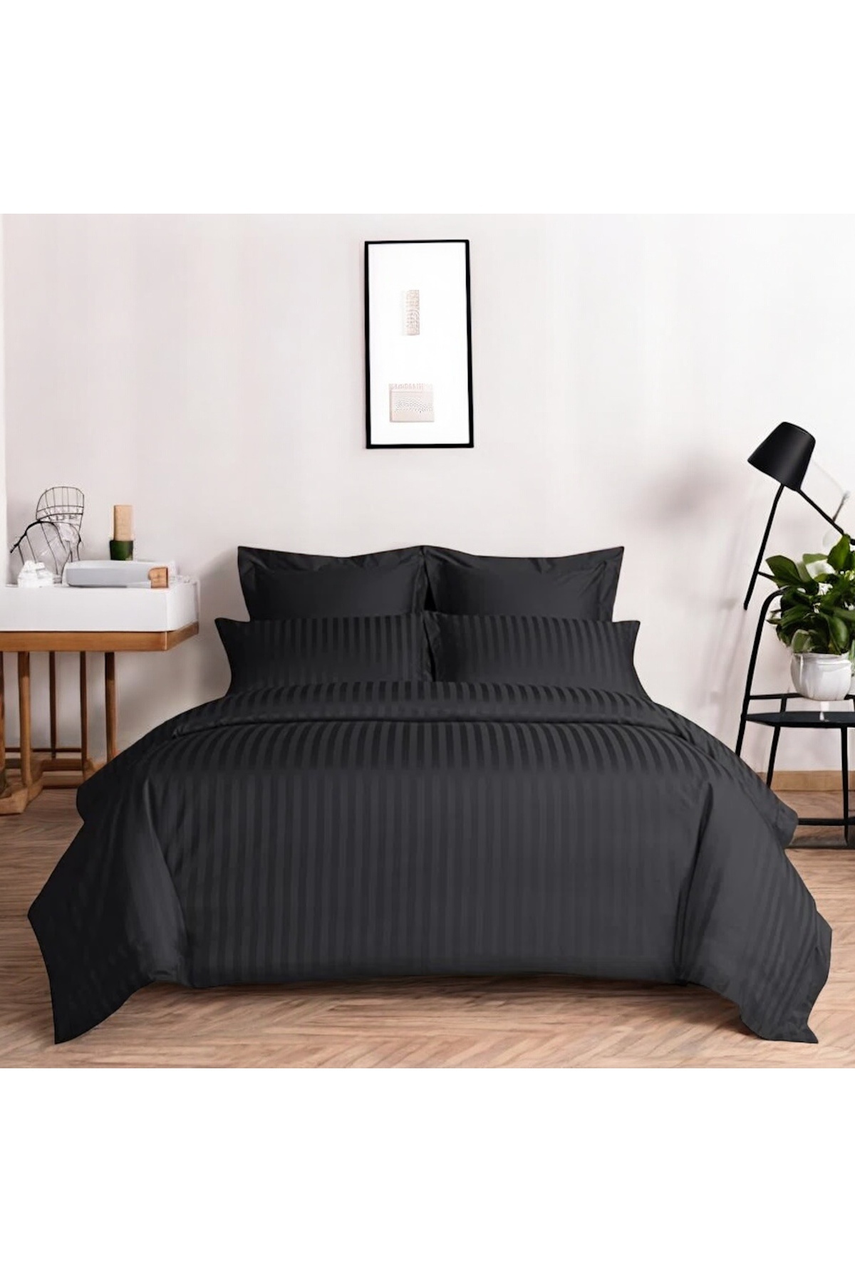 Pamuk Saten Tek Kişilik Çizgili Nevresim Takımı - Siyah Pamuk Saten Tek Kişilik Çizgili Nevresim Takımı - Siyah Çizgili Saren Siyah Nev. Tek 160 x 220
