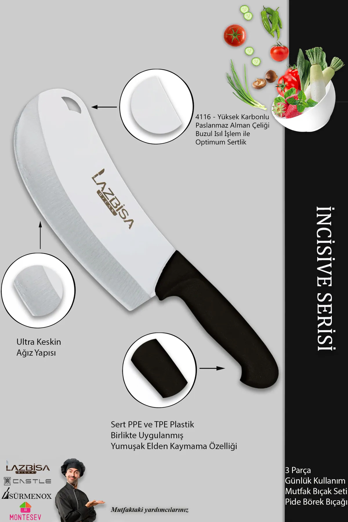 İncisive Serisi Pide Börek Soğan Pizza Kesici Mutfak Bıçak Seti Satır Zırh Siyah Renk İncisive Serisi Pide Börek Soğan Pizza Kesici Mutfak Bıçak Seti Satır Zırh Siyah Renk LAZBİSA006 تک سایز