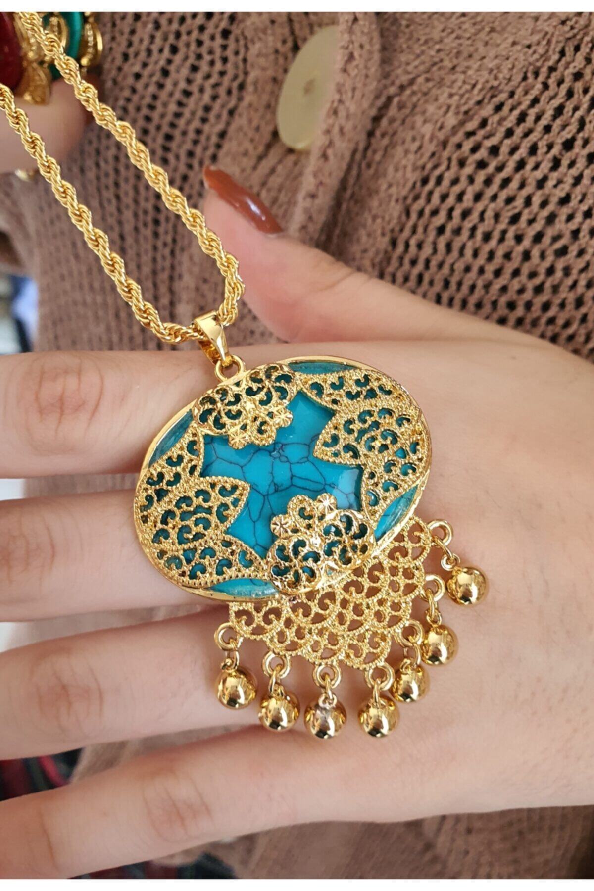 22 Ayar Altın Kaplama Zirkon Taşlı Firuze Kolye 22 Ayar Altın Kaplama Zirkon Taşlı Firuze Kolye Y553723 60 cm