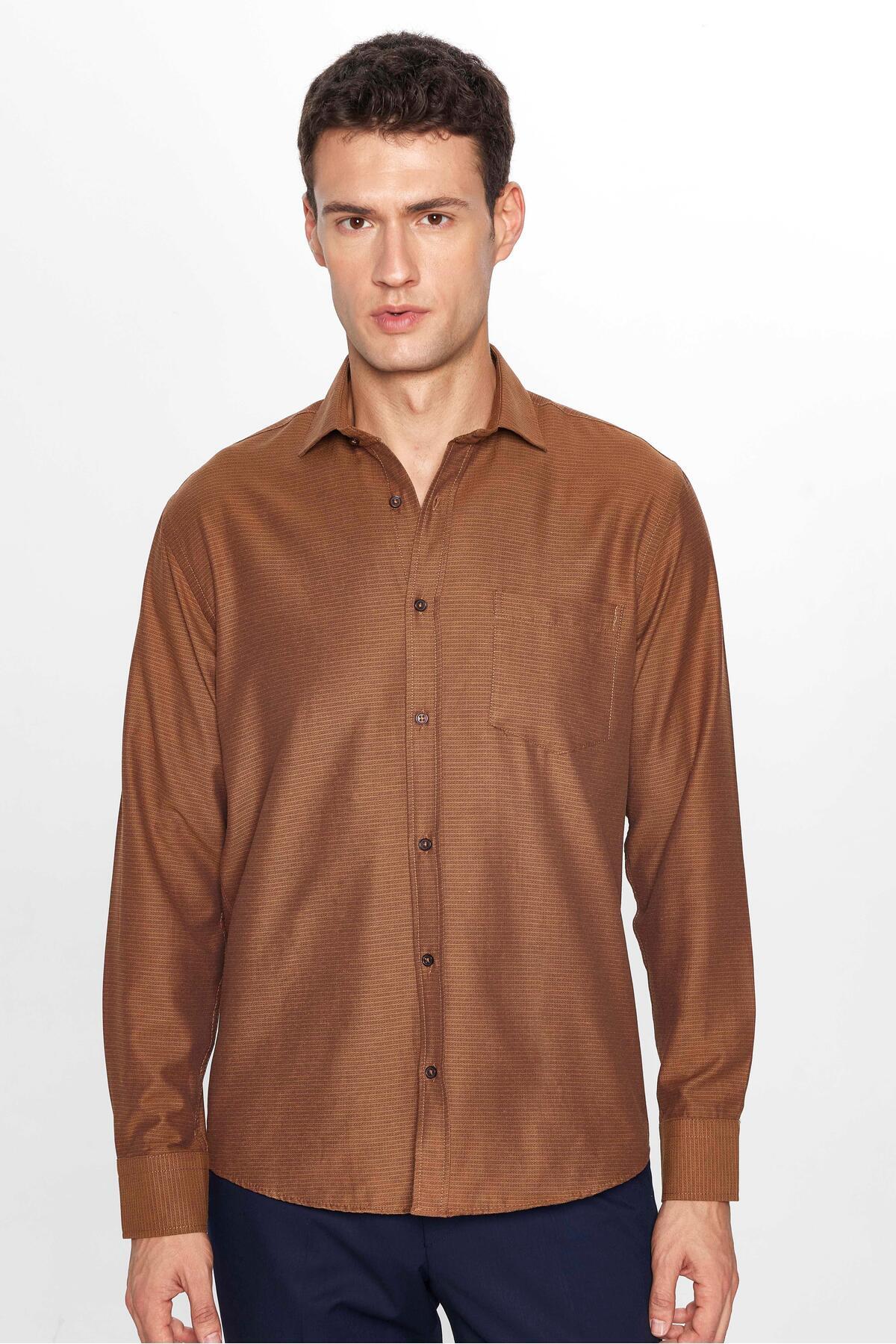 Slim Fit Uzun Kollu Likralı Düz Pamuk Saten Erkek Kahve Gömlek Slim Fit Uzun Kollu Likralı Düz Pamuk Saten Erkek Kahve Gömlek DR200135-308 2XL