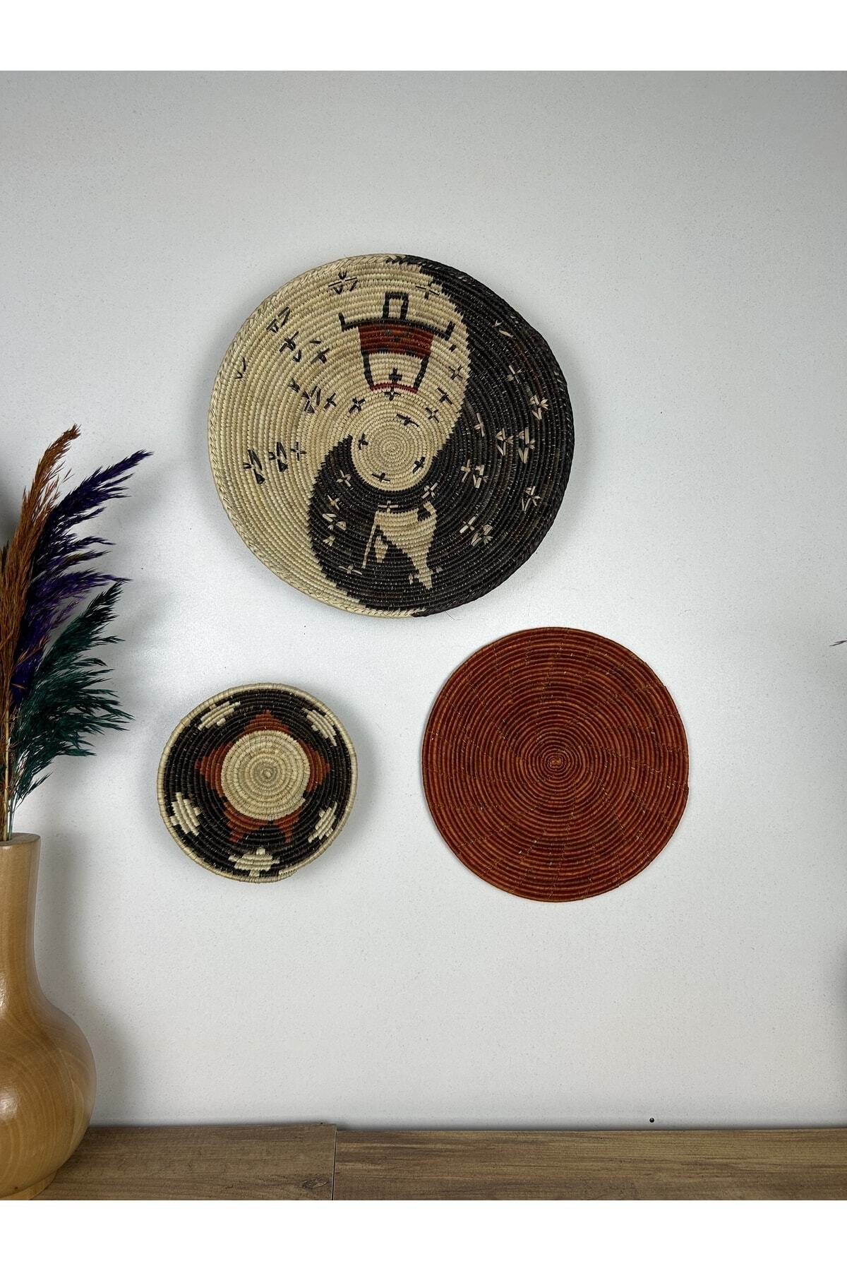 Hasır Duvar Tabağı Seti / Dekoratif Duvar Aksesuarı Hasır Duvar Tabağı Seti / Dekoratif Duvar Aksesuarı Dhimon Yuvarlak