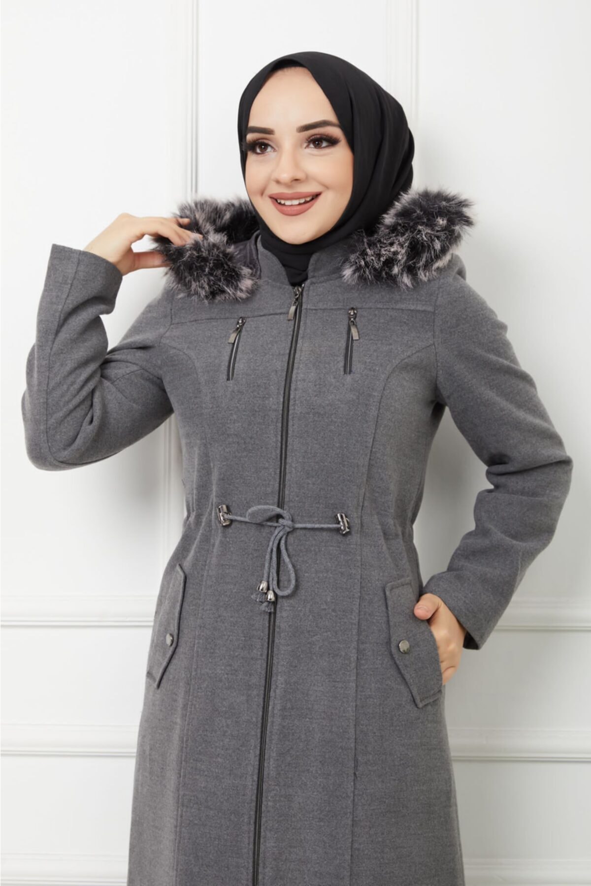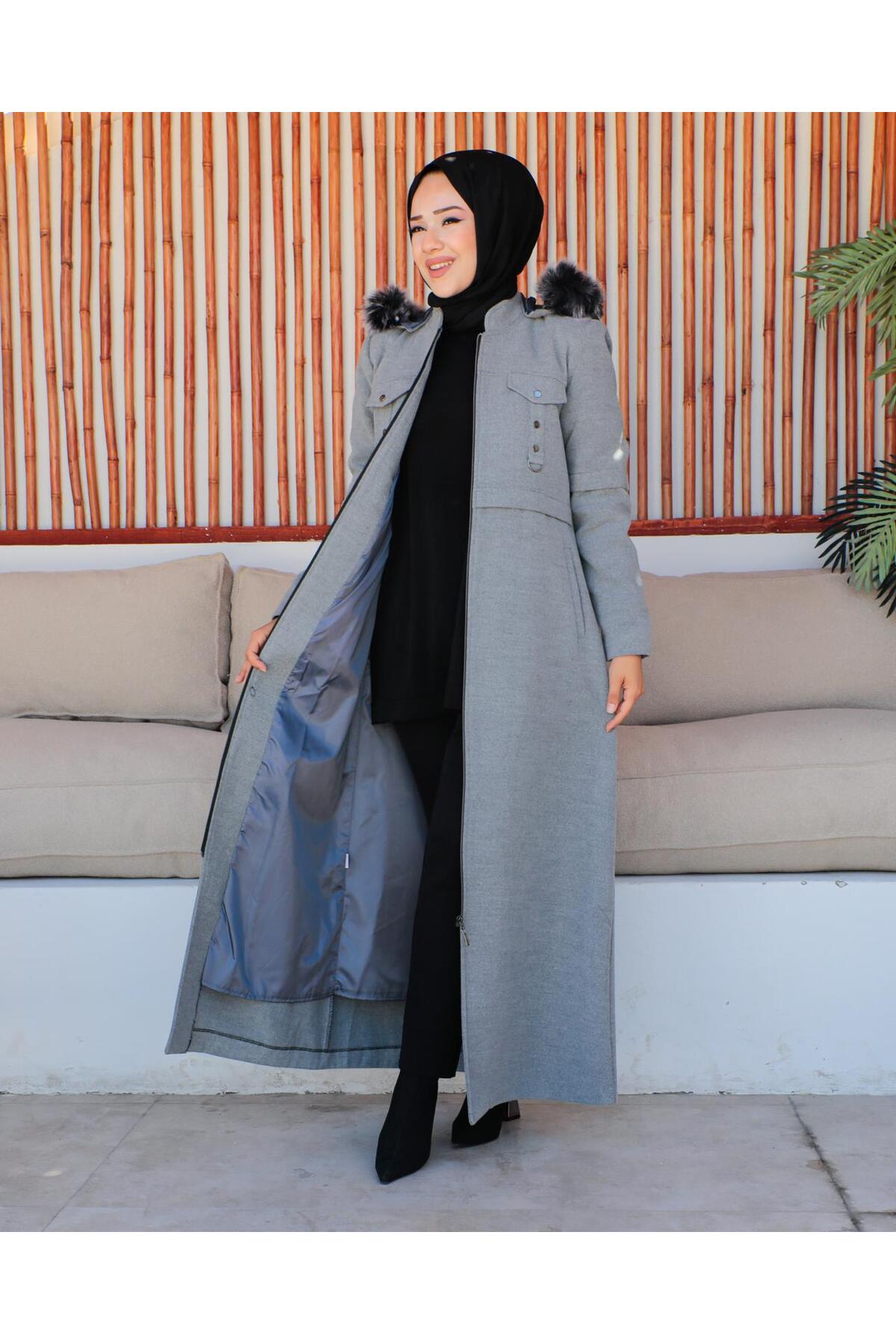 Kadın Kaşe Kapşonlu Kürklü Kaban & Mont Kadın Kaşe Kapşonlu Kürklü Kaban & Mont OZY0121 52