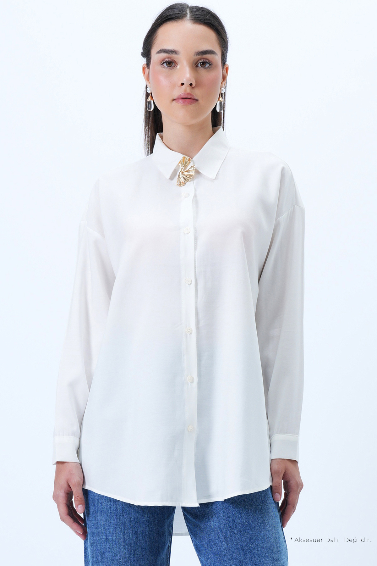 Kadın Beyaz Uzun Boyfriend Poplin Gömlek BP00045 Kadın Beyaz Uzun Boyfriend Poplin Gömlek BP00045 42