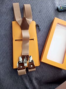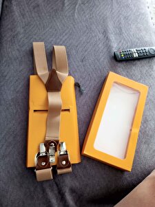 Açık Kahverengi Deri Bağlantılı Pantolon Askısı Açık Kahverengi Deri Bağlantılı Pantolon Askısı PA003 تک سایز