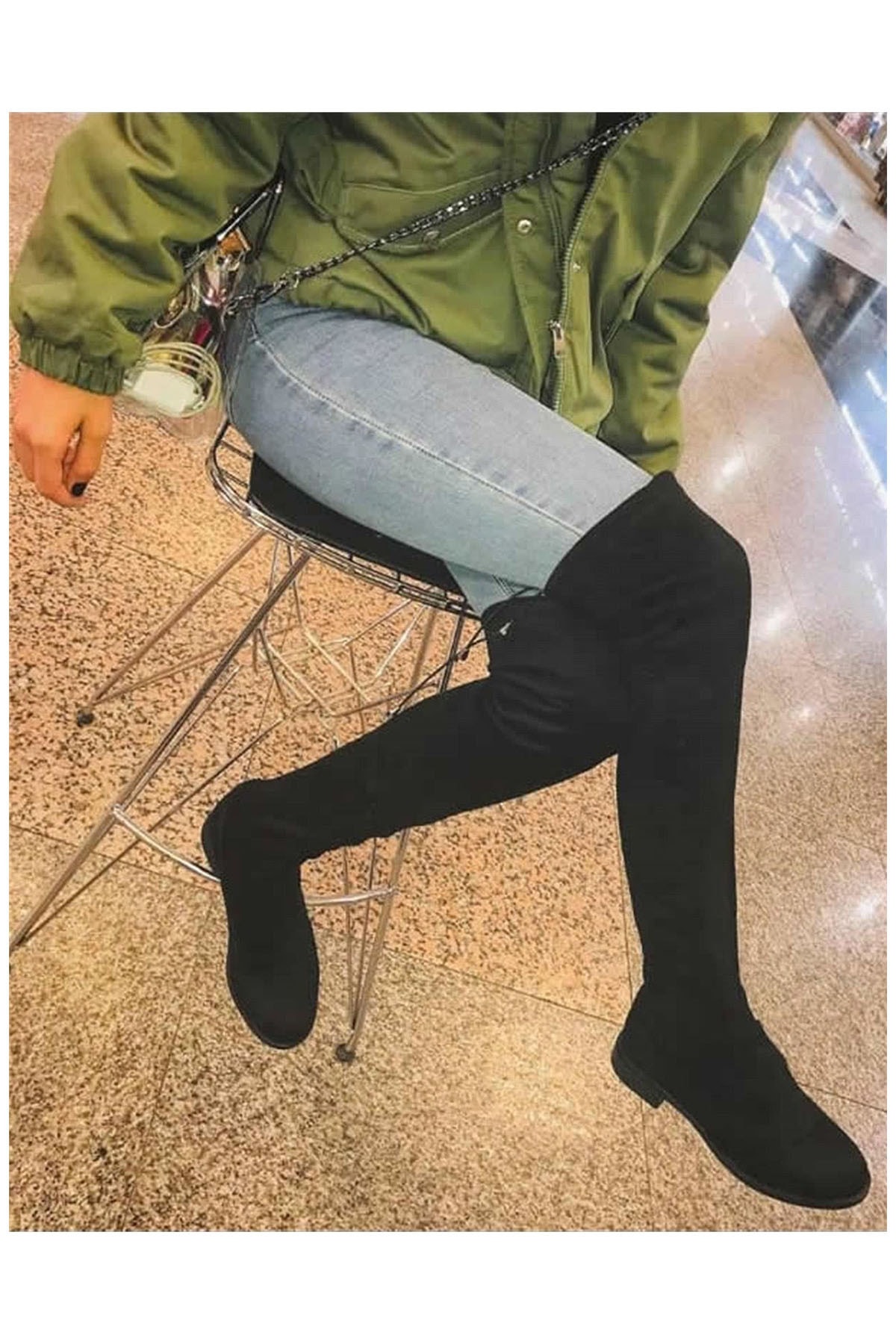 Kadın Siyah Süet Streç Diz Üstü Çorap Çizme Kadın Siyah Süet Streç Diz Üstü Çorap Çizme K21BRP00573 41