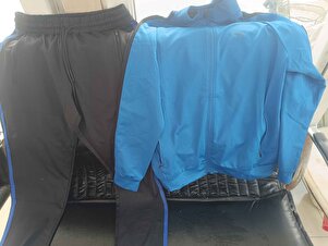 Erkek Saks Eşofman Takımı Dalgıç Kumaş Yanları Şeritli Erkek Saks Eşofman Takımı Dalgıç Kumaş Yanları Şeritli AS-300 6XL
