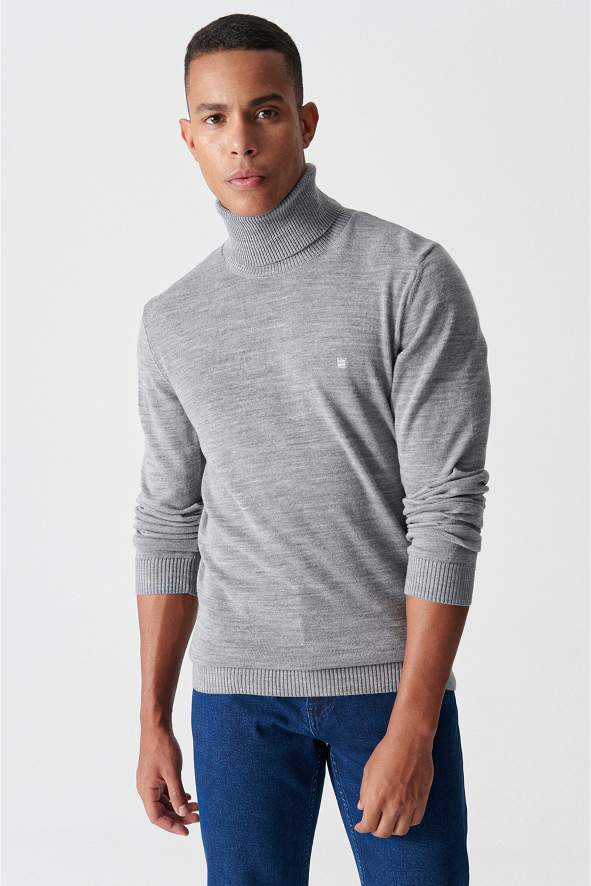 Erkek Gri Tam Balıkçı Yaka Tüylenmeyen Triko Kazak E005002 Erkek Gri Tam Balıkçı Yaka Tüylenmeyen Triko Kazak E005002 3XL