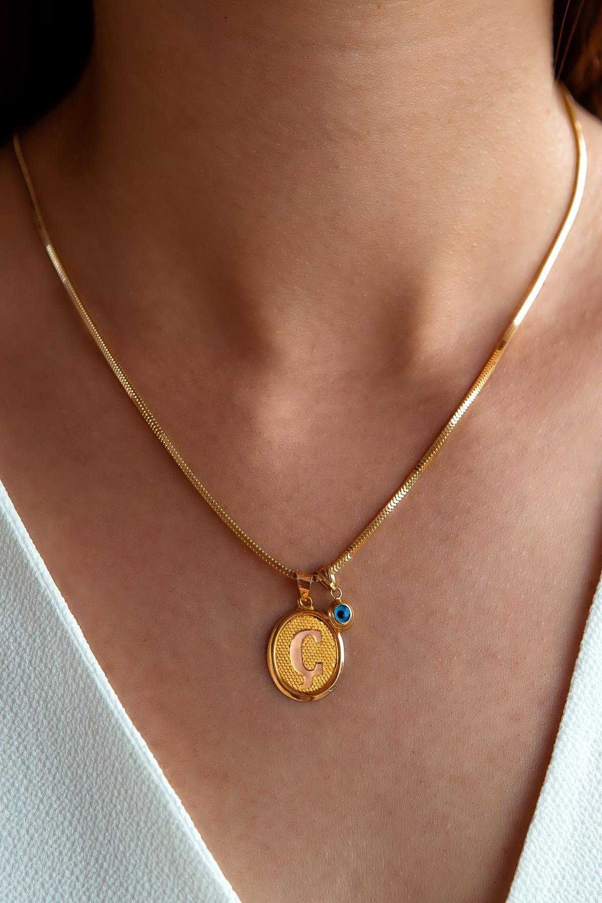 Nazar Boncuklu Altın M Harf Kolye Nazar Boncuklu Altın M Harf Kolye S01100185M تک سایز
