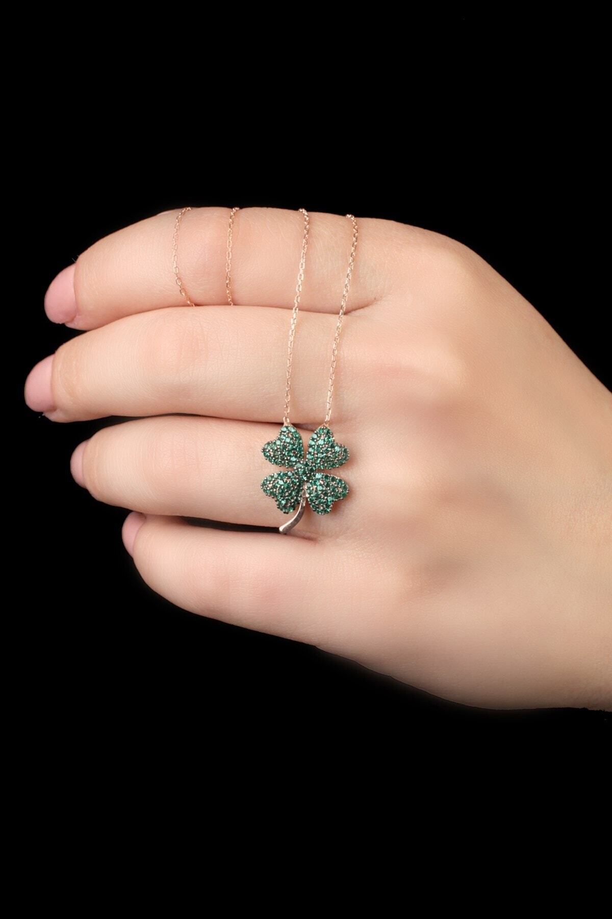 Kadın Yeşil 925 Ayar Yonca Gümüş Kolye Kadın Yeşil 925 Ayar Yonca Gümüş Kolye TRDYL918 تک سایز