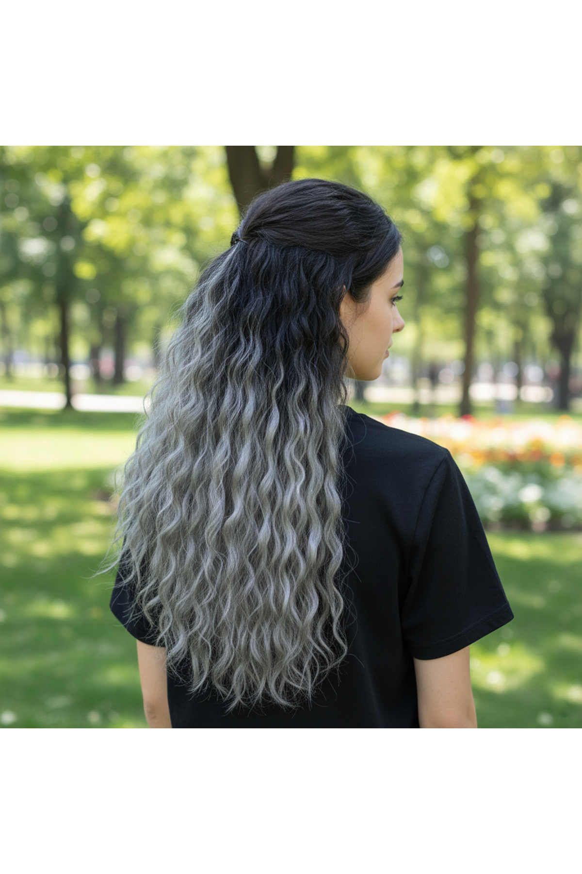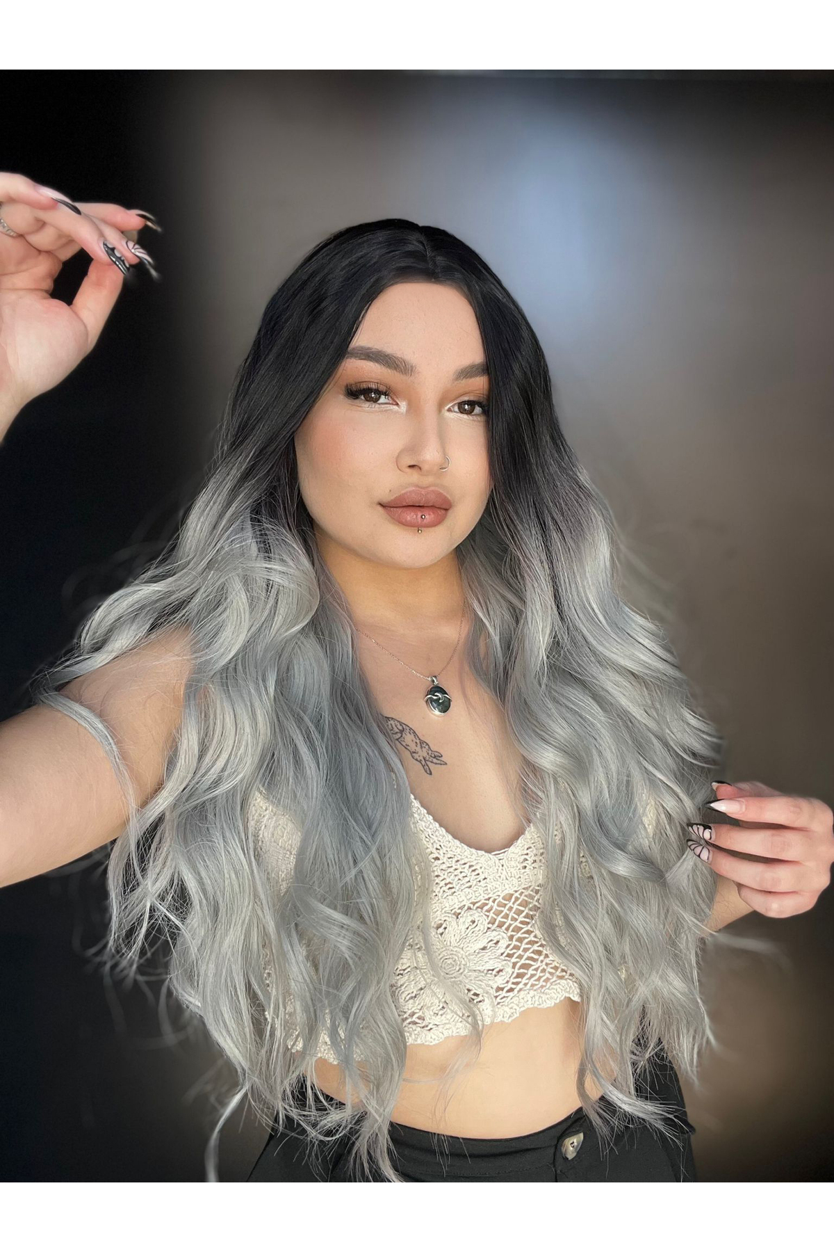 Afro Dalgalı Tül Peruk Siyah Gri Ombreli 300 gr 70 cm Afro Dalgalı Tül Peruk Siyah Gri Ombreli 300 gr 70 cm 8810-189A تک سایز