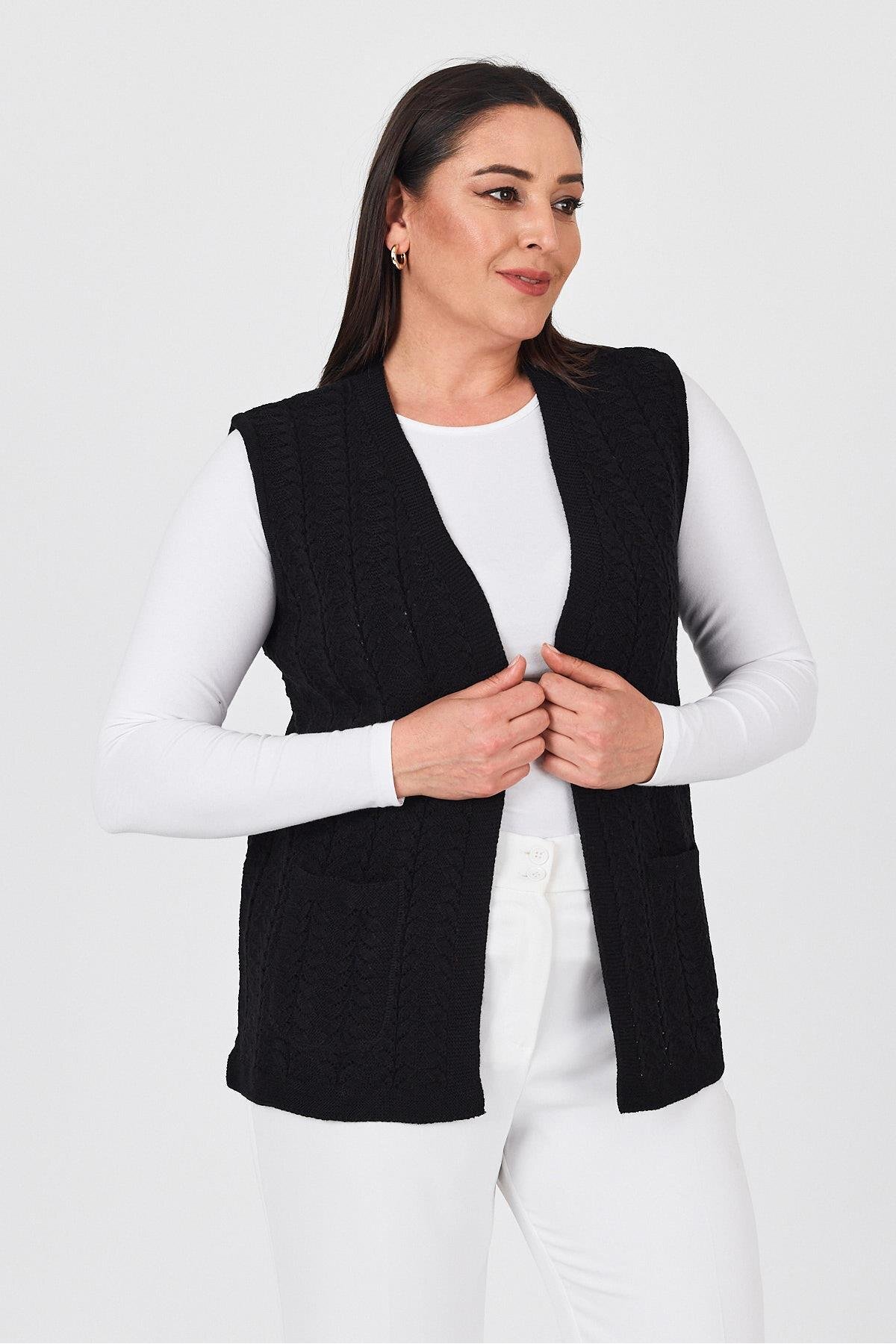 Kadın Siyah Cepli Kışlık Kalın Örme Triko Anne Yelek Kadın Siyah Cepli Kışlık Kalın Örme Triko Anne Yelek 1003 2XL