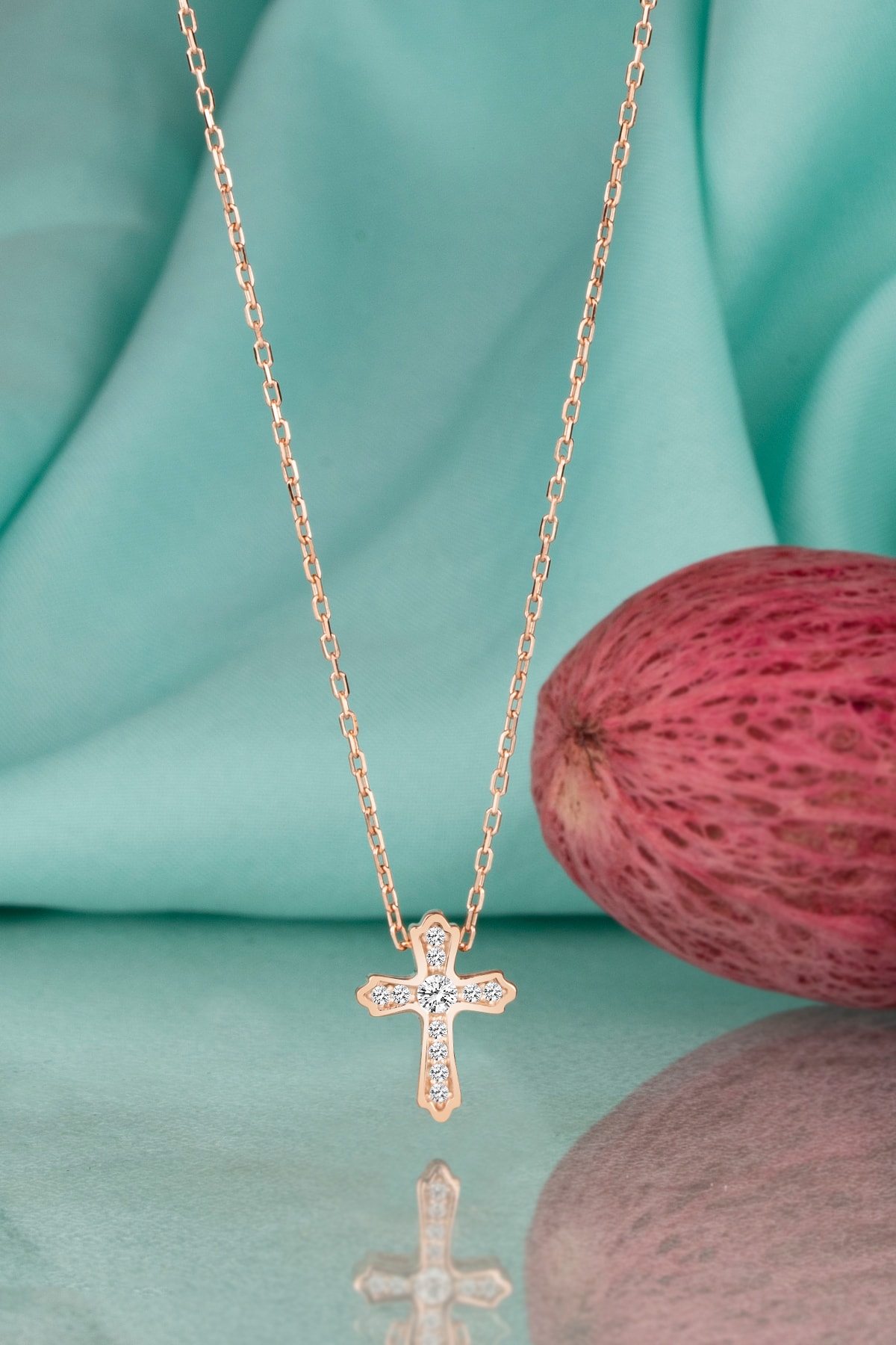 Gümüş Kolye Orijinal Taşlı Haç Temalı Rose Kaplama Bayan Kolye Gümüş Kolye Orijinal Taşlı Haç Temalı Rose Kaplama Bayan Kolye TYC00054285522 45 cm