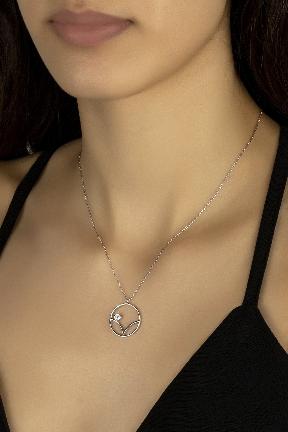 Gümüş Kolye Orijinal Swarovskı Taşlı Tektaş Rose Kaplama Bayan Kolye Gümüş Kolye Orijinal Swarovskı Taşlı Tektaş Rose Kaplama Bayan Kolye SWK1076 45 cm