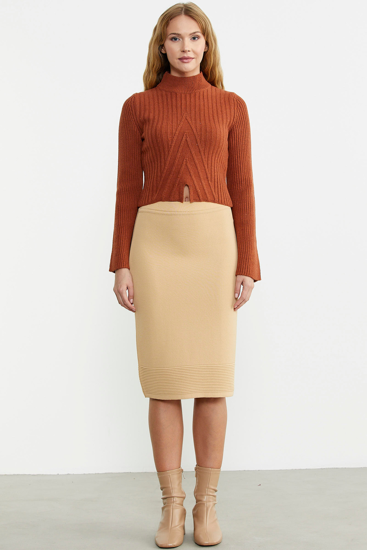 Lastik Örgülü Kadın Triko Etek - Saks Lastik Örgülü Kadın Triko Etek - Saks 21K2108-36140.001-R0812 42