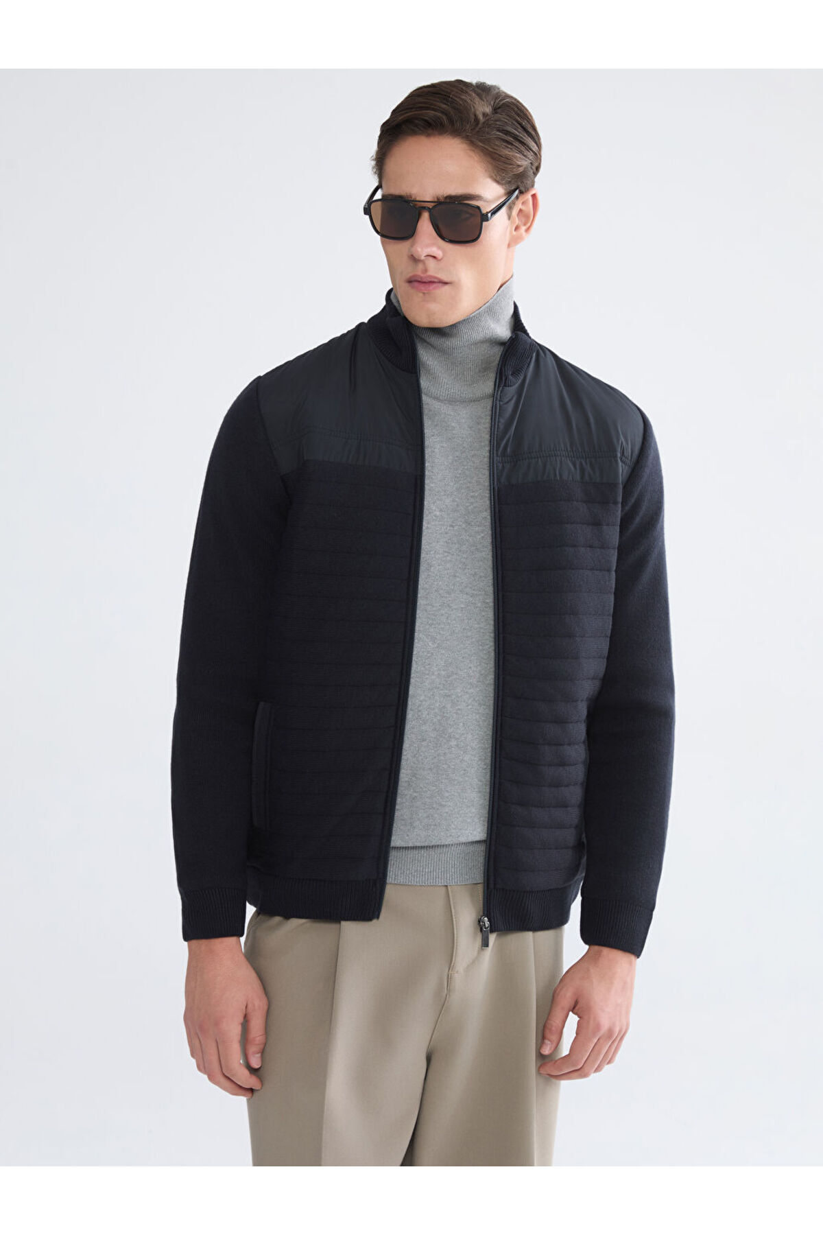 Blok Desenli Cepli Erkek Triko Ceket - Siyah Blok Desenli Cepli Erkek Triko Ceket - Siyah 21K1104-14243.001-R0001 XL