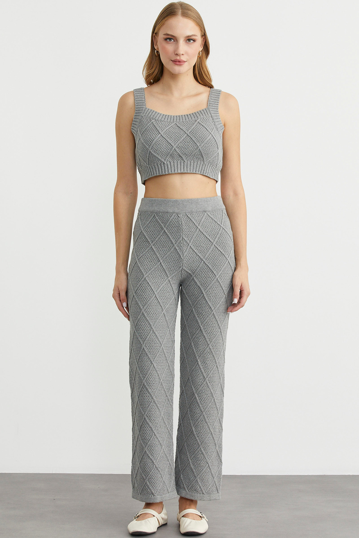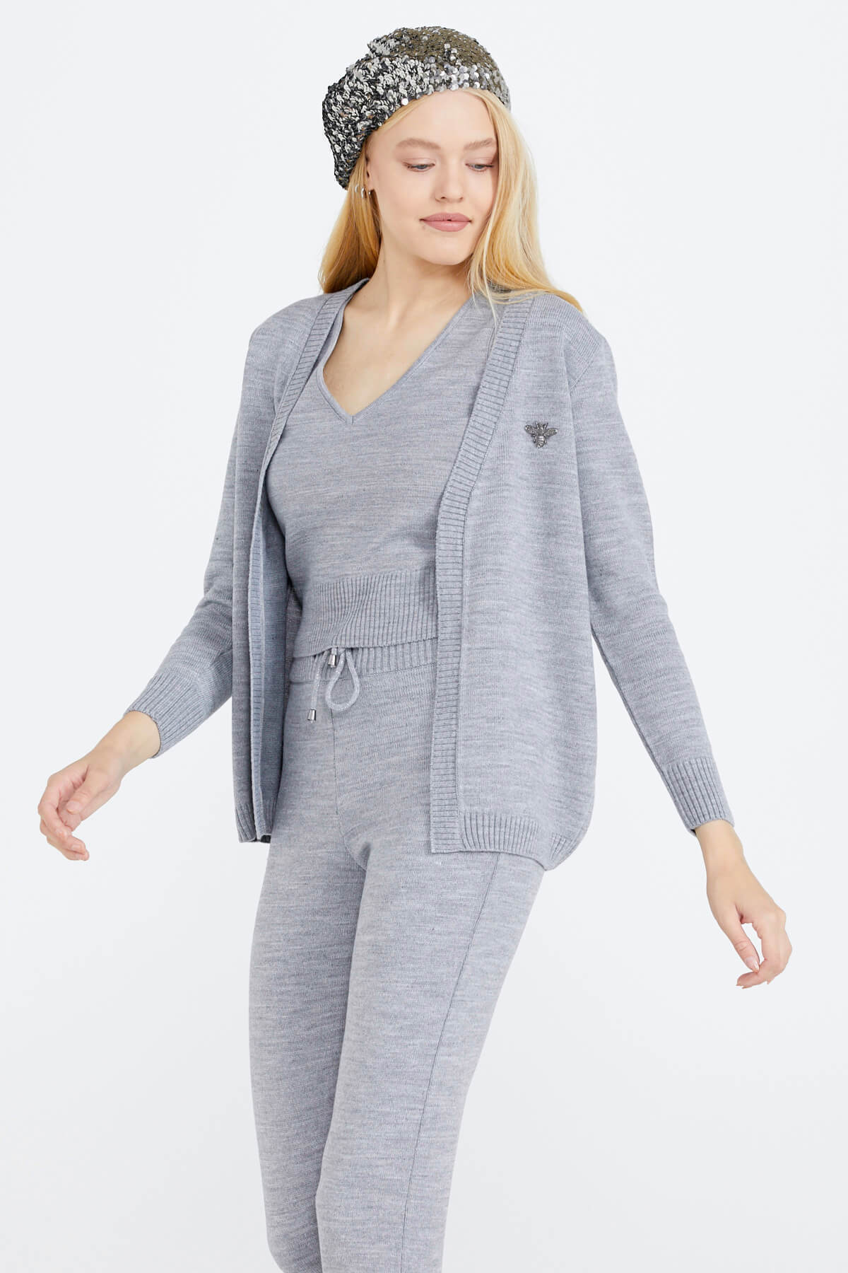 Kadın Üçlü Triko Takım - Gri Kadın Üçlü Triko Takım - Gri 21K2138-34312.001-R0200 M
