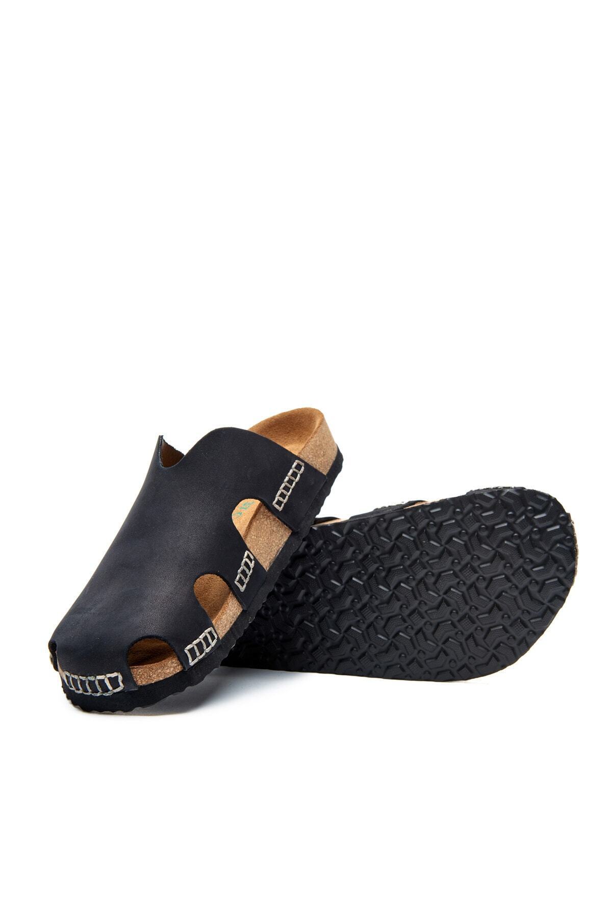 Unisex Siyah Nubuk Deri Anatomik Mantar Tabanlı Deri Sabo Terlik Unisex Siyah Nubuk Deri Anatomik Mantar Tabanlı Deri Sabo Terlik 063 45