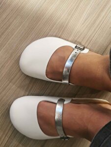 Kadın Beyaz Gümüş Deri Anatomik Mantar Tabanlı Terlik Kadın Beyaz Gümüş Deri Anatomik Mantar Tabanlı Terlik CF000050 42
