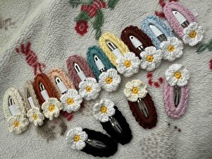 Amigurumi El Yapımı 4'lü Renkli Papatya Çıt Çıtlı Toka Seti Amigurumi El Yapımı 4'lü Renkli Papatya Çıt Çıtlı Toka Seti 101010 تک سایز
