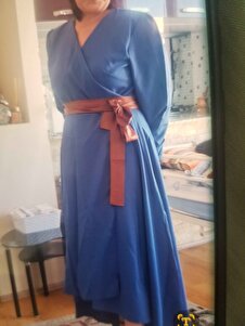 Kadın Taba Deri Kemerli Mavi Uzun Kol Asimetrik Kesim Elbise Kadın Taba Deri Kemerli Mavi Uzun Kol Asimetrik Kesim Elbise MAVI-210-TABAKMR 54