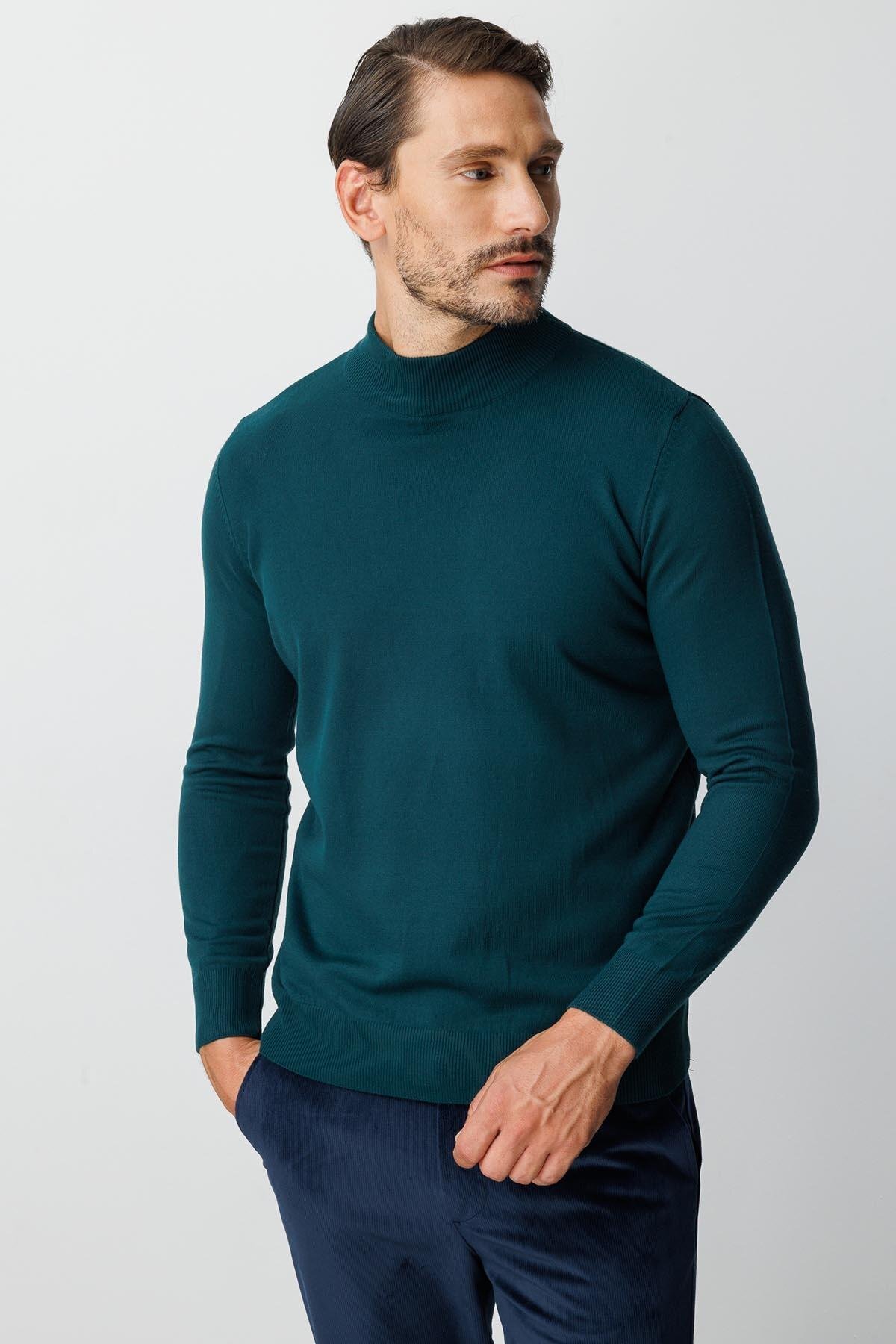 Petrol Standart Fit Dar Kalıp Yarım Balıkçı Düz Uzun Kollu Triko Petrol Standart Fit Dar Kalıp Yarım Balıkçı Düz Uzun Kollu Triko 1736221995YBM 4XL