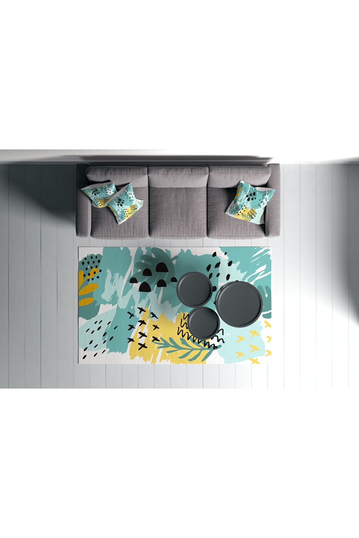 Turkuaz Kilim Desenli Etnik Yıkanabilir Kaymaz Taban Halı Ve Yolluk Turkuaz Kilim Desenli Etnik Yıkanabilir Kaymaz Taban Halı Ve Yolluk MEG935 160 x 230